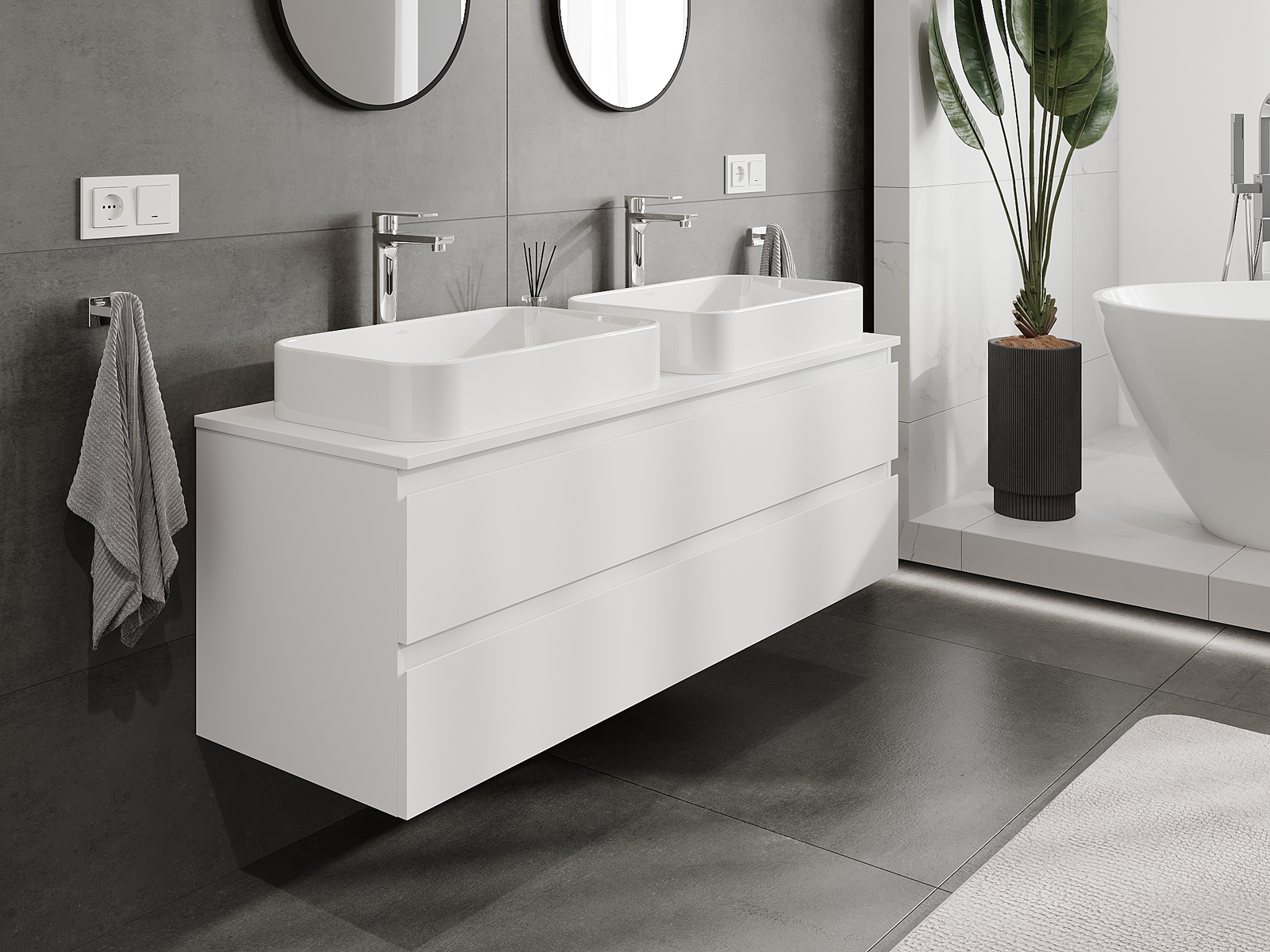Mobilierul nostru modular pentru baie poate fi combinat în diverse configurații de culori, permițând personalizarea completă. Puteți alege atât aspectul, cât și funcțiile fiecărui element, ceea ce permite adaptarea mobilierului la preferințele dvs. stilistice și funcționale.