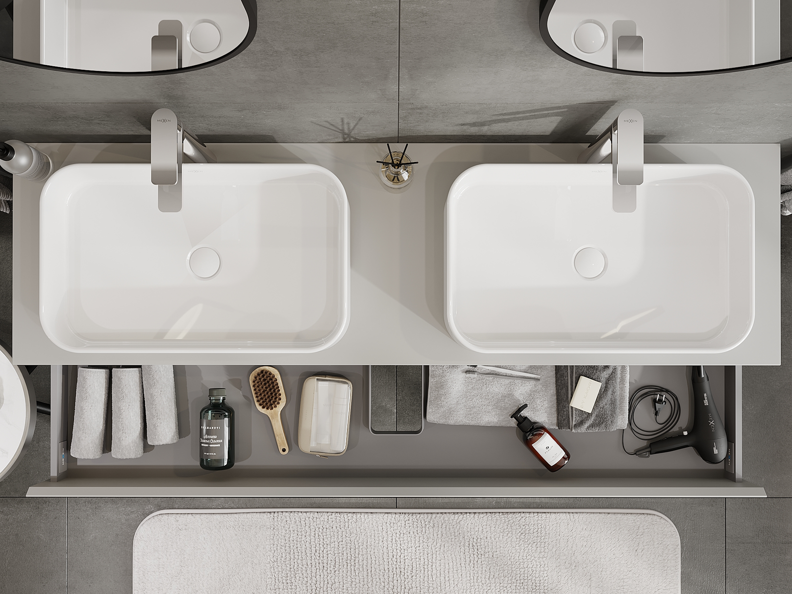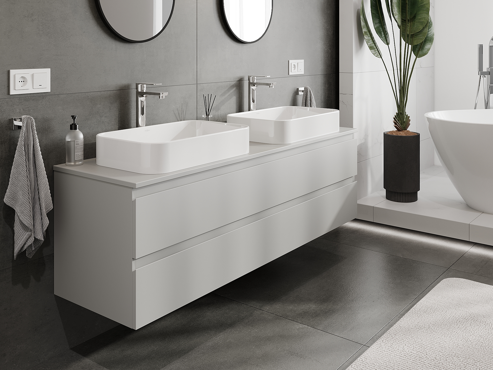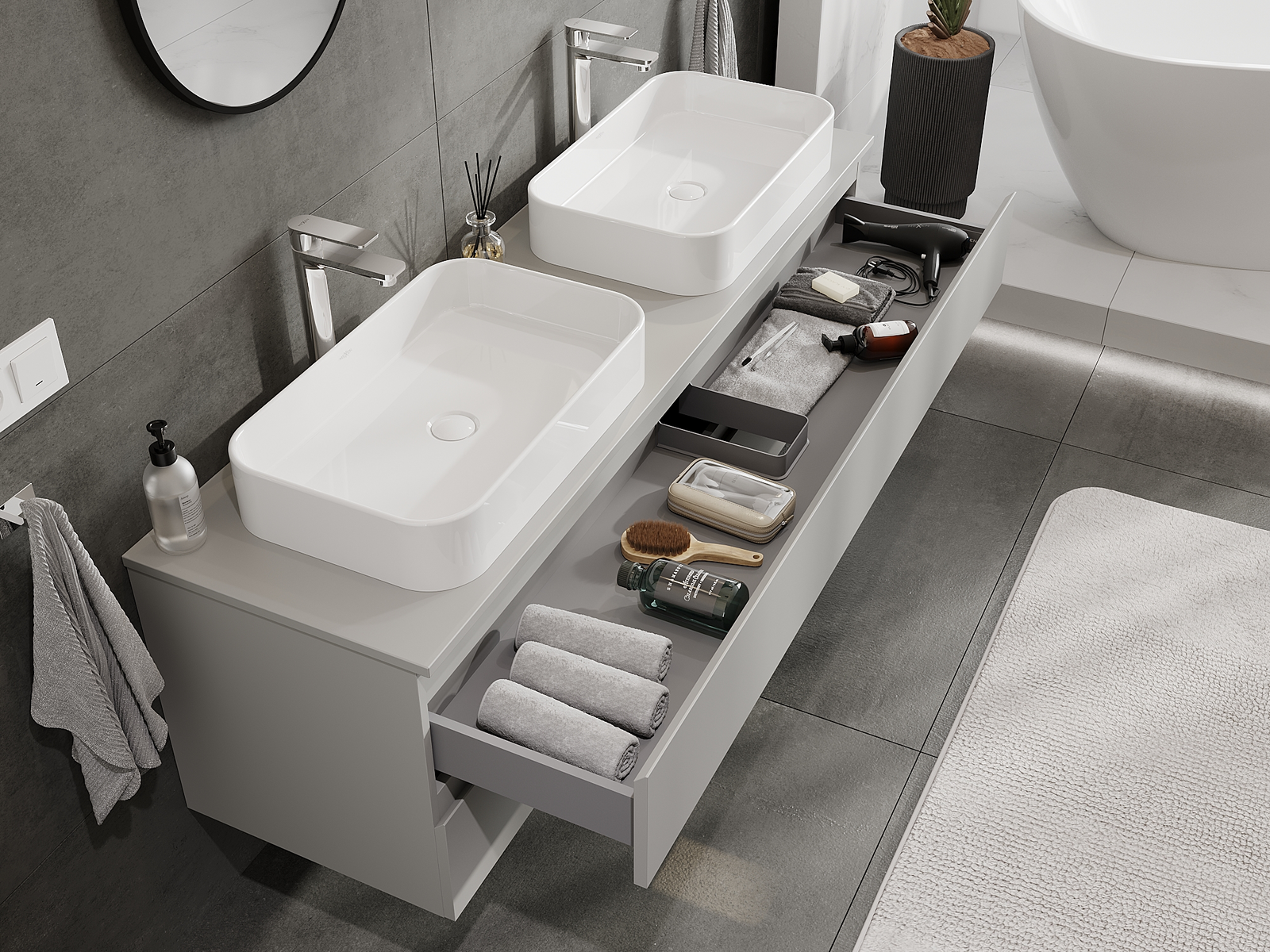 Mobilierul nostru modular pentru baie poate fi combinat în diverse configurații de culori, permițând personalizarea completă. Puteți alege atât aspectul, cât și funcțiile fiecărui element, ceea ce permite adaptarea mobilierului la preferințele dvs. stilistice și funcționale.