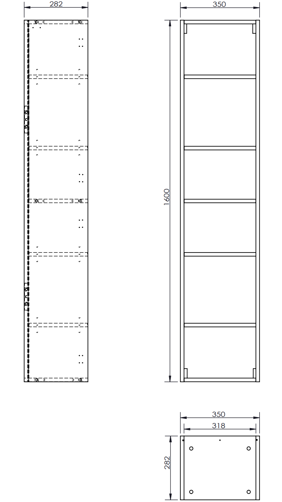 5 rafturi (1 raft central fix și 4 rafturi cu posibilitate de reglare)