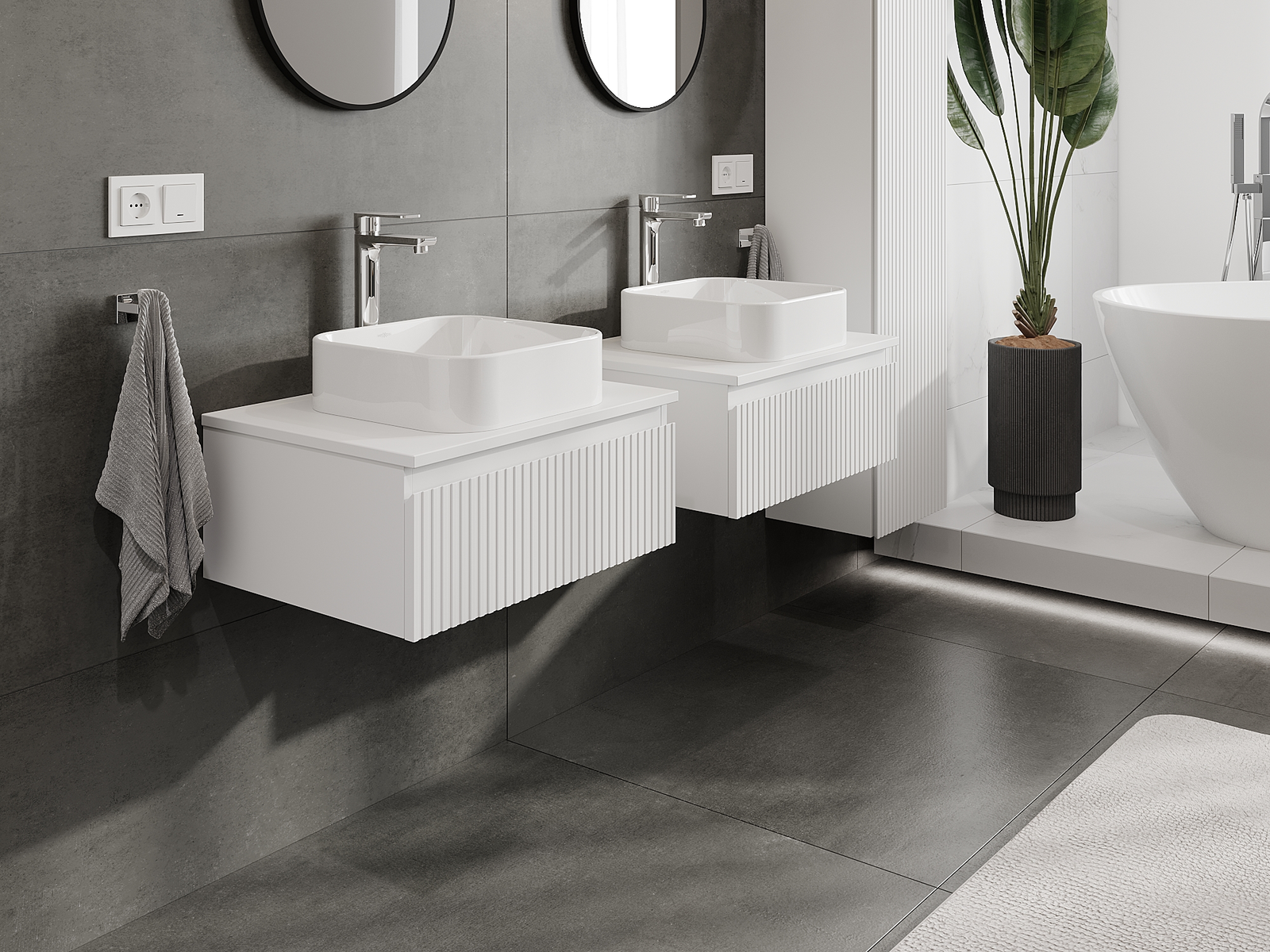 Mexen Rivel dulap de baie pentru chiuvetă 60 cm, 1 sertar, canelat, alb mat - 91A20-06023-1-BF01