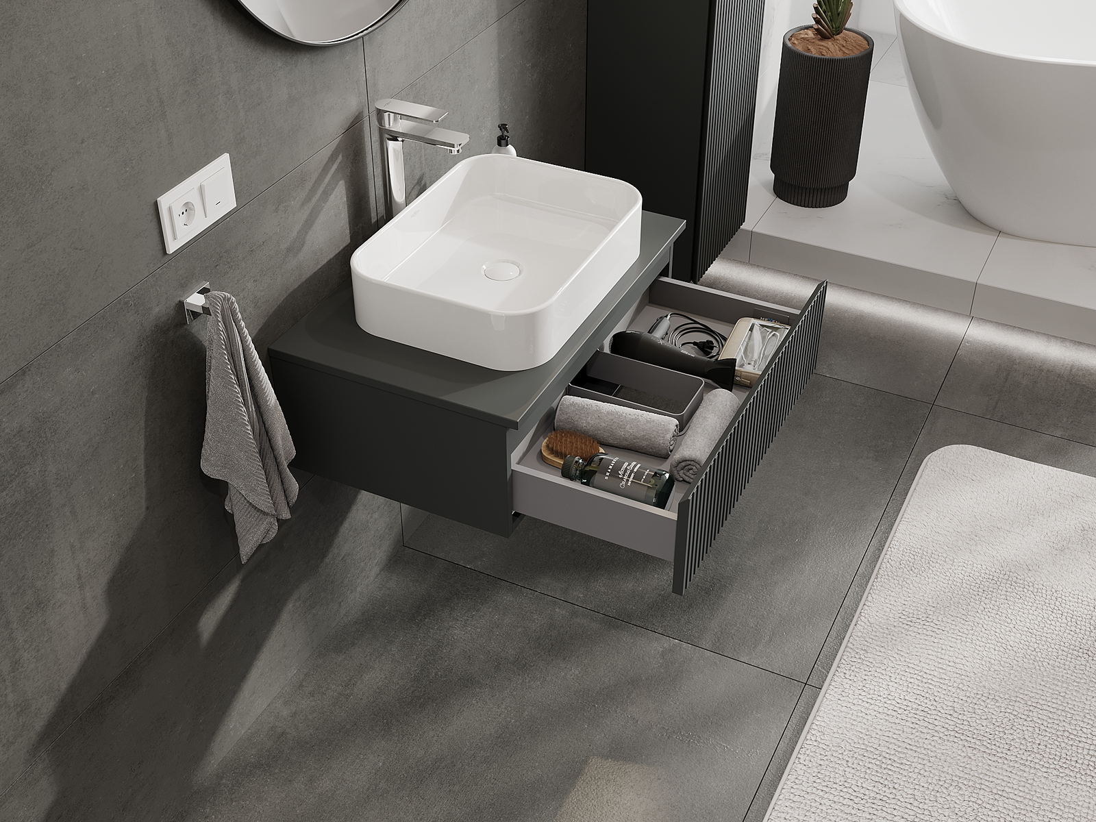 Mobilierul nostru modular pentru baie poate fi combinat în diverse configurații de culori, permițând personalizarea completă. Puteți alege atât aspectul, cât și funcțiile fiecărui element, ceea ce permite adaptarea mobilierului la preferințele dvs. stilistice și funcționale.