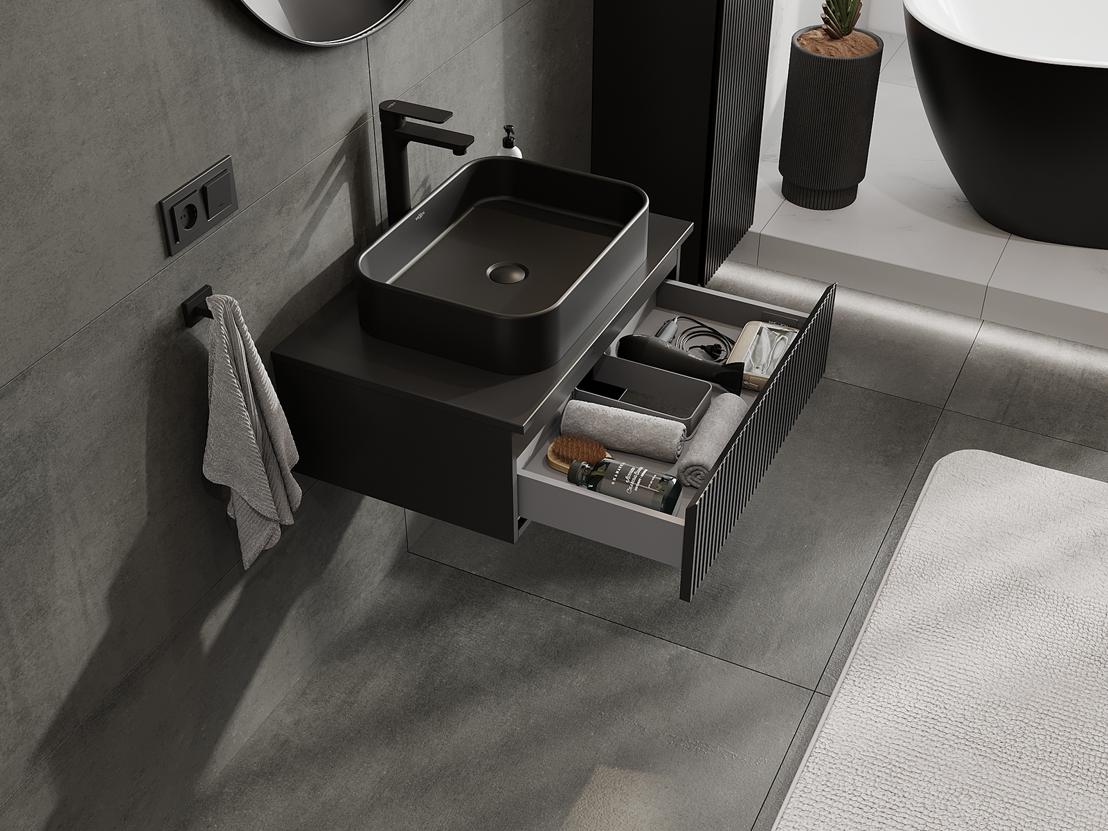 Mexen Rivel dulap de baie sub lavoar 70 cm, 1 sertar, riflat, grafit mat - 91A20-07023-1-BF71