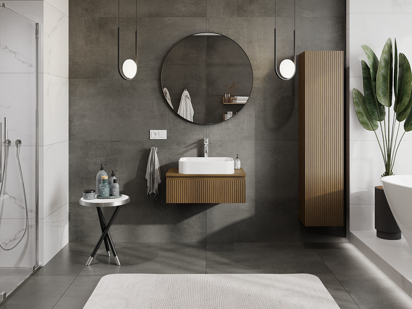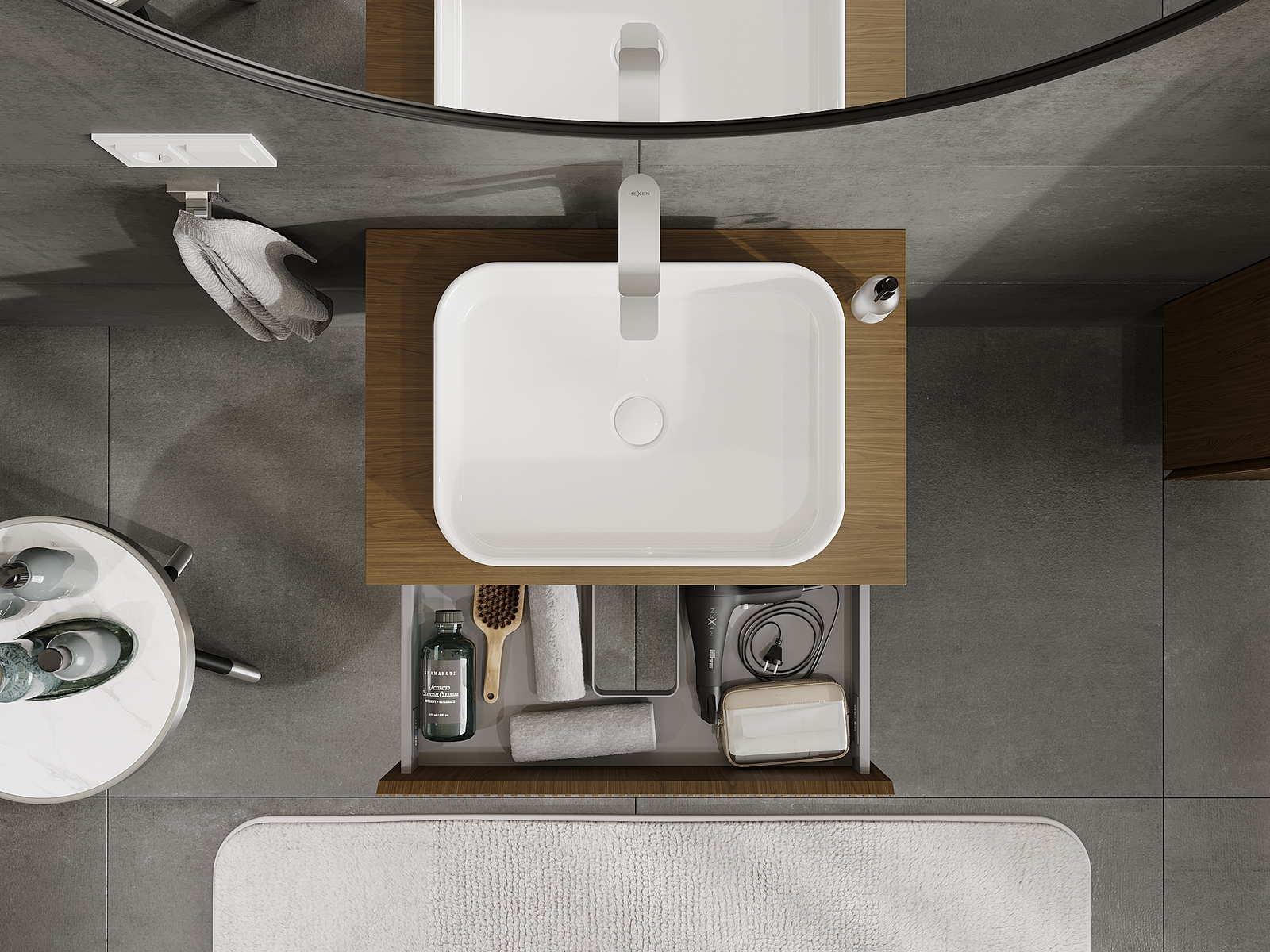 Mobilierul nostru modular pentru baie poate fi combinat în diverse configurații de culori, permițând personalizarea completă. Puteți alege atât aspectul, cât și funcțiile fiecărui element, ceea ce permite adaptarea mobilierului la preferințele dvs. stilistice și funcționale.