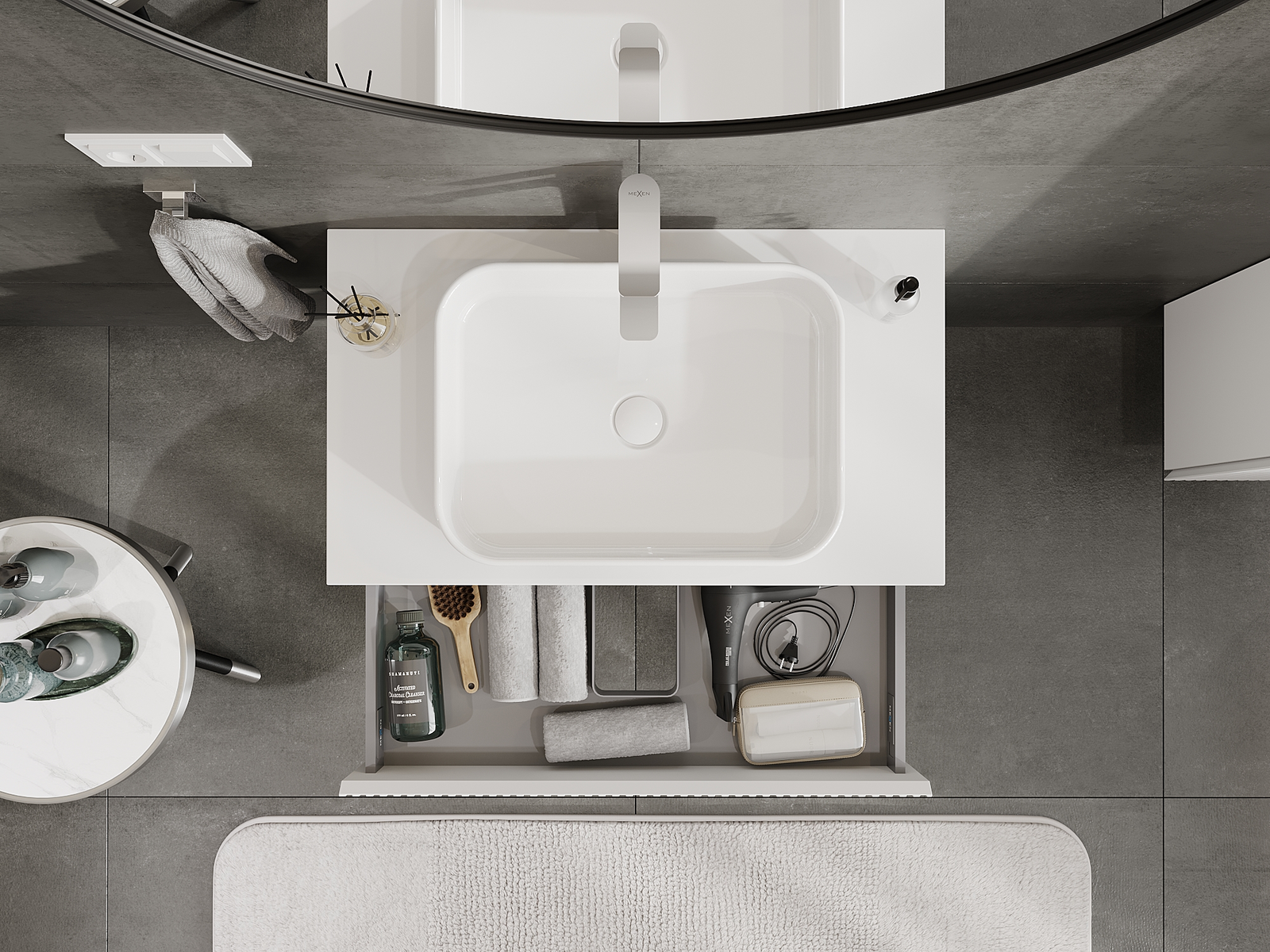 Mobilierul nostru modular pentru baie poate fi combinat în diverse configurații de culori, permițând personalizarea completă. Puteți alege atât aspectul, cât și funcțiile fiecărui element, ceea ce permite adaptarea mobilierului la preferințele dvs. stilistice și funcționale.
