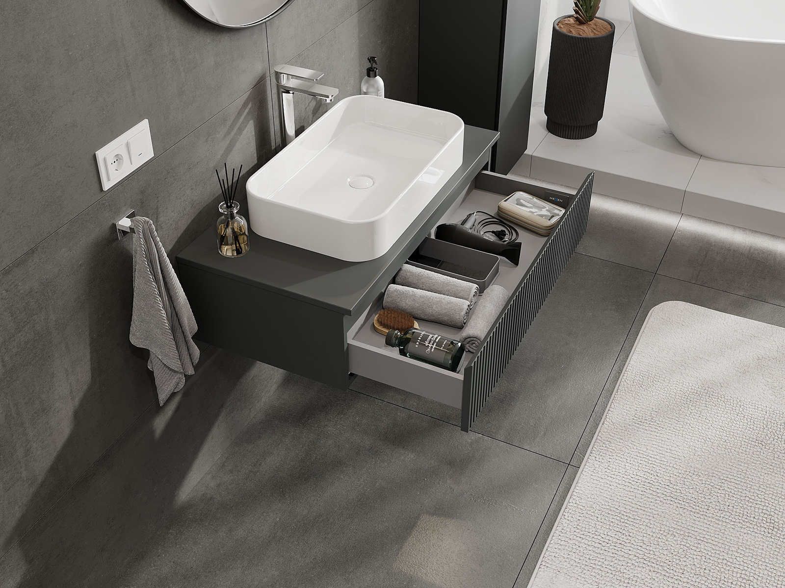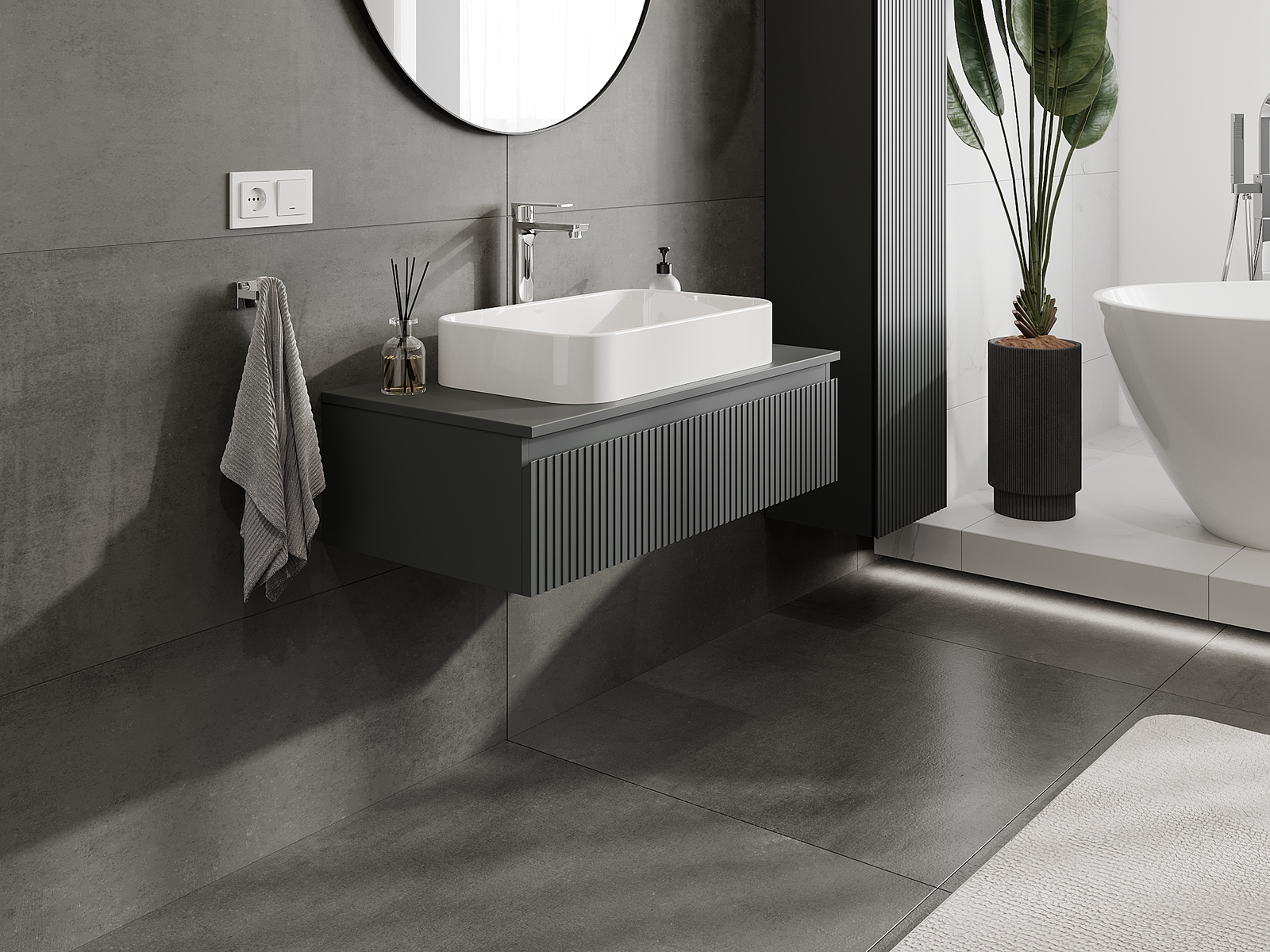 Mexen Rivel dulap baie sub chiuvetă 90 cm, 1 sertar, canelat, grafit mat - 91A20-09023-1-BF66