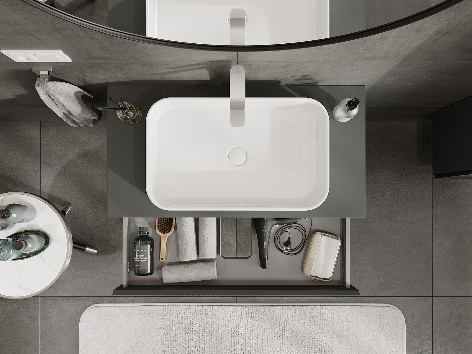 Mobilierul nostru modular pentru baie poate fi combinat în diverse configurații de culori, permițând personalizarea completă. Puteți alege atât aspectul, cât și funcțiile fiecărui element, ceea ce permite adaptarea mobilierului la preferințele dvs. stilistice și funcționale.