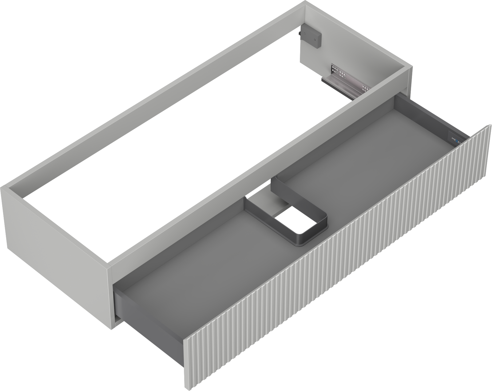 Decupajul în sertar este proiectat în așa fel încât să acomodeze sifonul, care este esențial în instalațiile de lavoare. Datorită acestui fapt, mobila poate fi montată complet funcțională, fără a fi necesară renunțarea la spațiul din sertar în favoarea instalației.