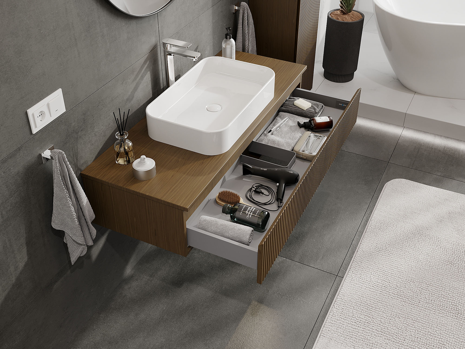 Mobilierul nostru modular pentru baie poate fi combinat în diverse configurații de culori, permițând personalizarea completă. Puteți alege atât aspectul, cât și funcțiile fiecărui element, ceea ce permite adaptarea mobilierului la preferințele dvs. stilistice și funcționale.