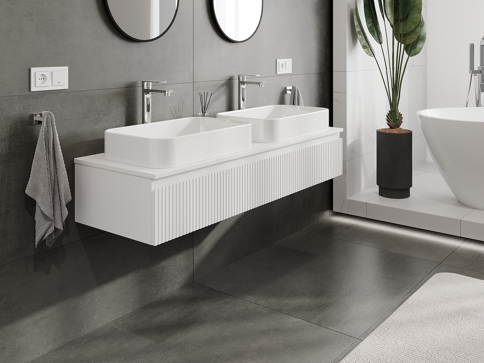 Mobilierul nostru modular pentru baie poate fi combinat în diverse configurații de culori, permițând personalizarea completă. Puteți alege atât aspectul, cât și funcțiile fiecărui element, ceea ce permite adaptarea mobilierului la preferințele dvs. stilistice și funcționale.