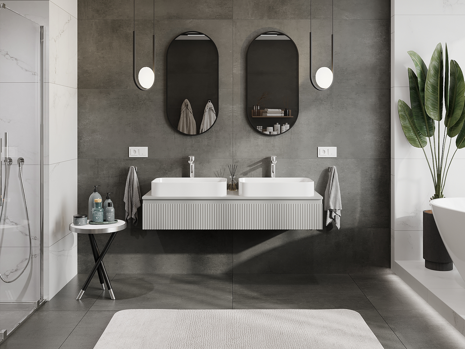 Mobilierul nostru modular pentru baie poate fi combinat în diverse configurații de culori, permițând personalizarea completă. Puteți alege atât aspectul, cât și funcțiile fiecărui element, ceea ce permite adaptarea mobilierului la preferințele dvs. stilistice și funcționale.
