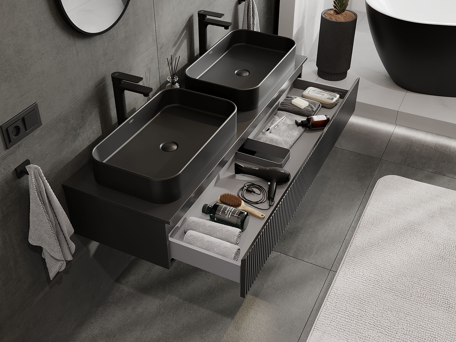 Mexen Rivel dulap baie sub lavoar 140 cm, 1 sertar, canelat, negru mat - 91A20-14023-1-BF71