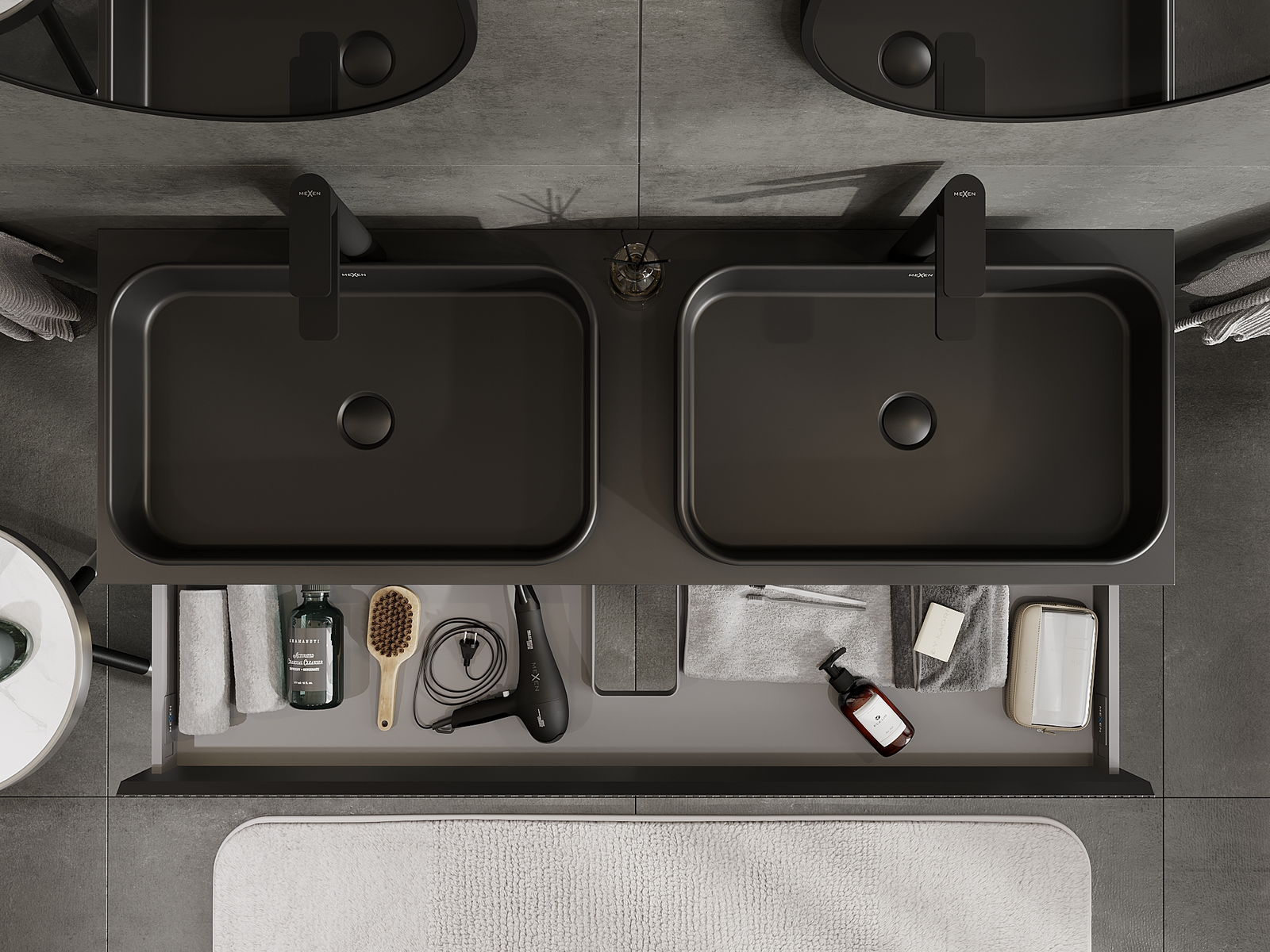 Mobilierul nostru modular pentru baie poate fi combinat în diverse configurații de culori, permițând personalizarea completă. Puteți alege atât aspectul, cât și funcțiile fiecărui element, ceea ce permite adaptarea mobilierului la preferințele dvs. stilistice și funcționale.