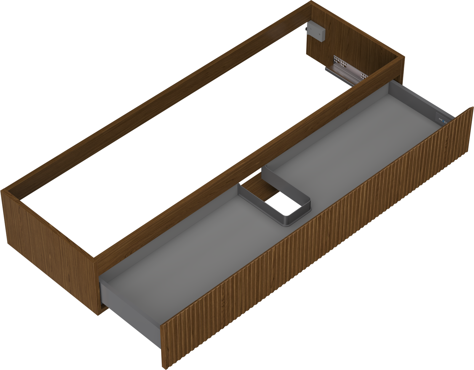 Decupajul în sertar este proiectat în așa fel încât să acomodeze sifonul, care este esențial în instalațiile de lavoare. Datorită acestui fapt, mobila poate fi montată complet funcțională, fără a fi necesară renunțarea la spațiul din sertar în favoarea instalației.