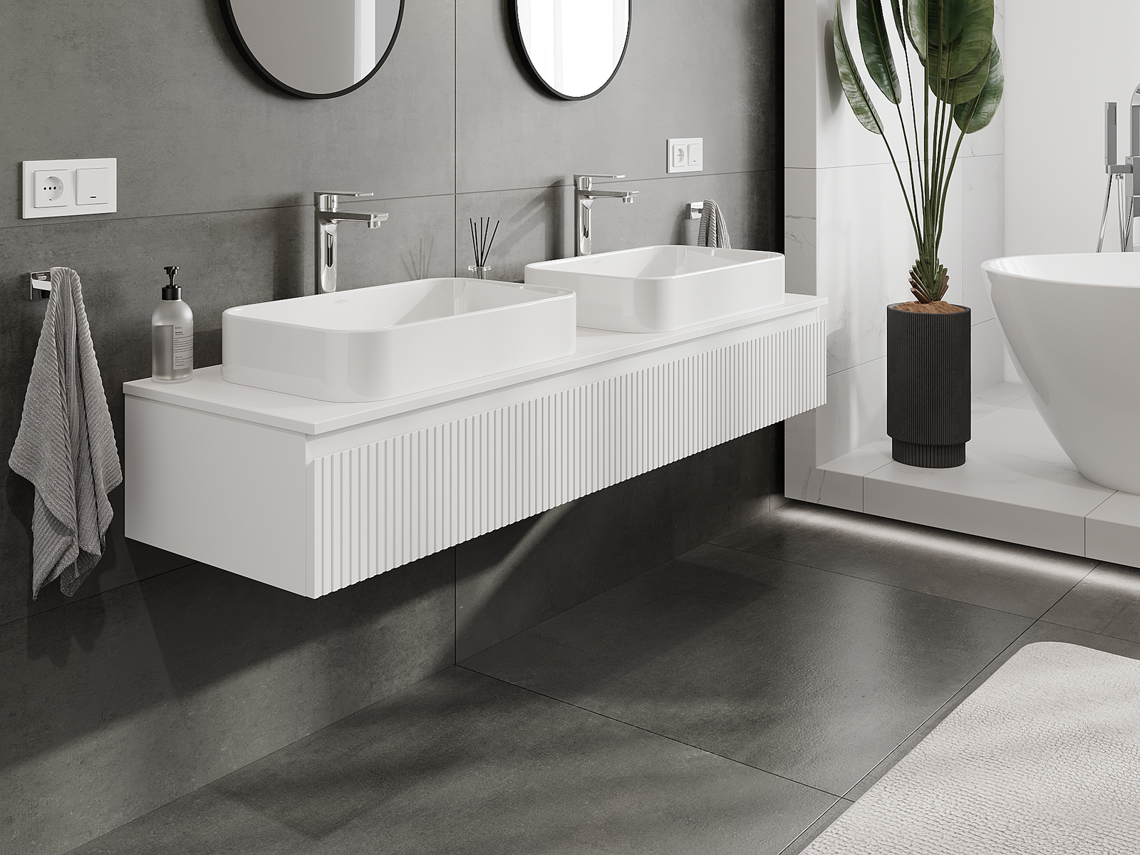 Mobilierul nostru modular pentru baie poate fi combinat în diverse configurații de culori, permițând personalizarea completă. Puteți alege atât aspectul, cât și funcțiile fiecărui element, ceea ce permite adaptarea mobilierului la preferințele dvs. stilistice și funcționale.