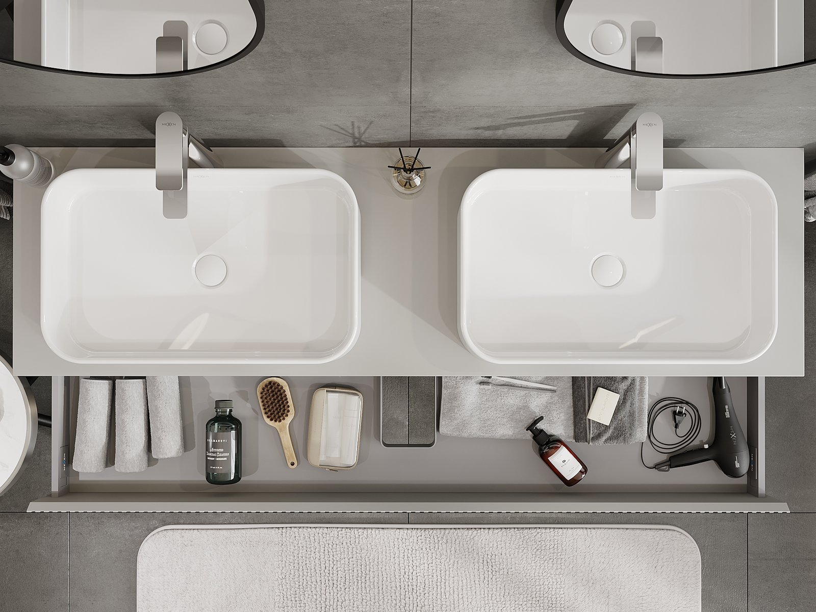 Mobilierul nostru modular pentru baie poate fi combinat în diverse configurații de culori, permițând personalizarea completă. Puteți alege atât aspectul, cât și funcțiile fiecărui element, ceea ce permite adaptarea mobilierului la preferințele dvs. stilistice și funcționale.
