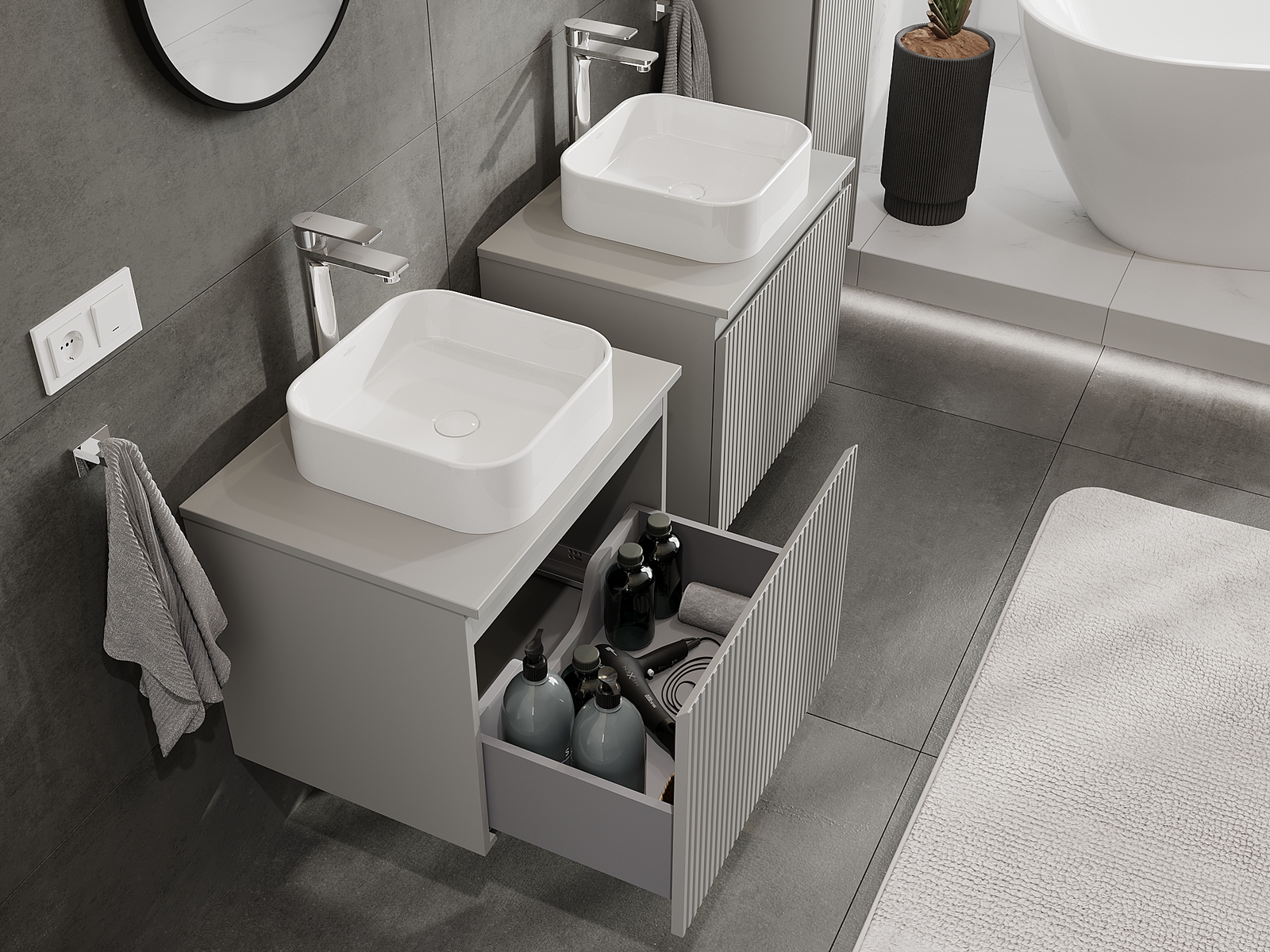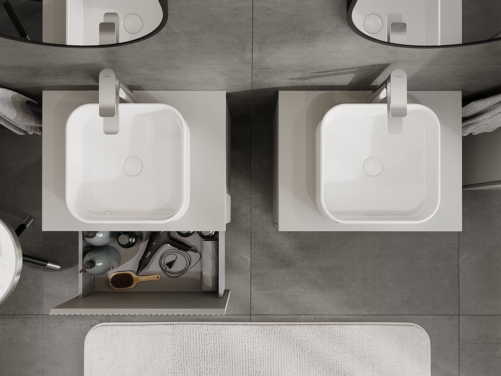 Mobilierul nostru modular pentru baie poate fi combinat în diverse configurații de culori, permițând personalizarea completă. Puteți alege atât aspectul, cât și funcțiile fiecărui element, ceea ce permite adaptarea mobilierului la preferințele dvs. stilistice și funcționale.