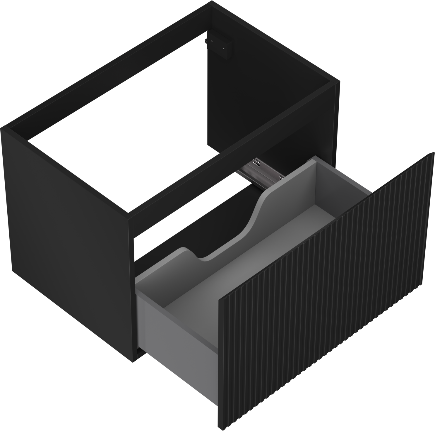 Decupajul în sertar este proiectat în așa fel încât să acomodeze sifonul, care este esențial în instalațiile de lavoare. Datorită acestui fapt, mobila poate fi montată complet funcțională, fără a fi necesară renunțarea la spațiul din sertar în favoarea instalației.