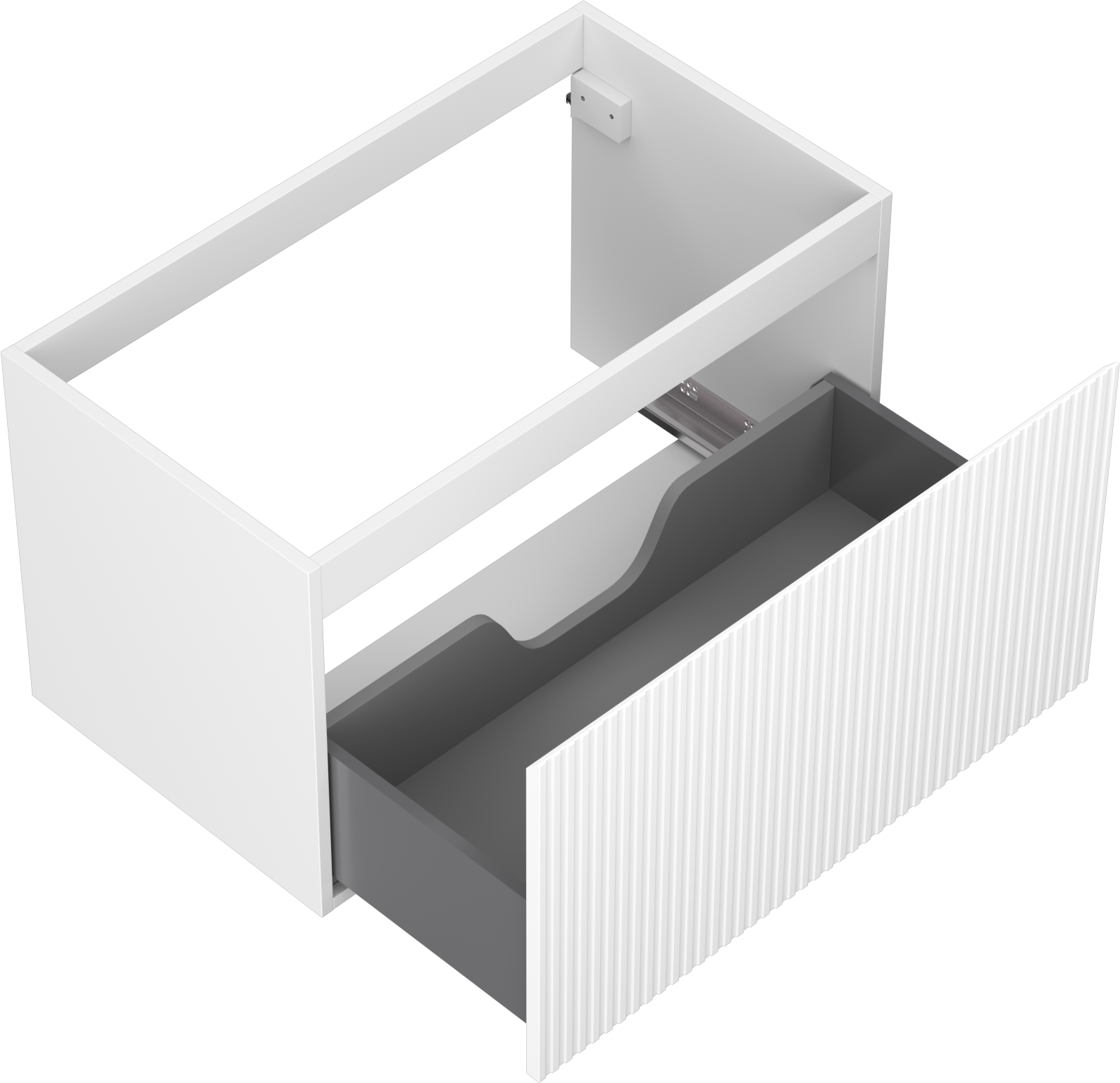 Decupajul în sertar este proiectat în așa fel încât să acomodeze sifonul, care este esențial în instalațiile de lavoare. Datorită acestui fapt, mobila poate fi montată complet funcțională, fără a fi necesară renunțarea la spațiul din sertar în favoarea instalației.