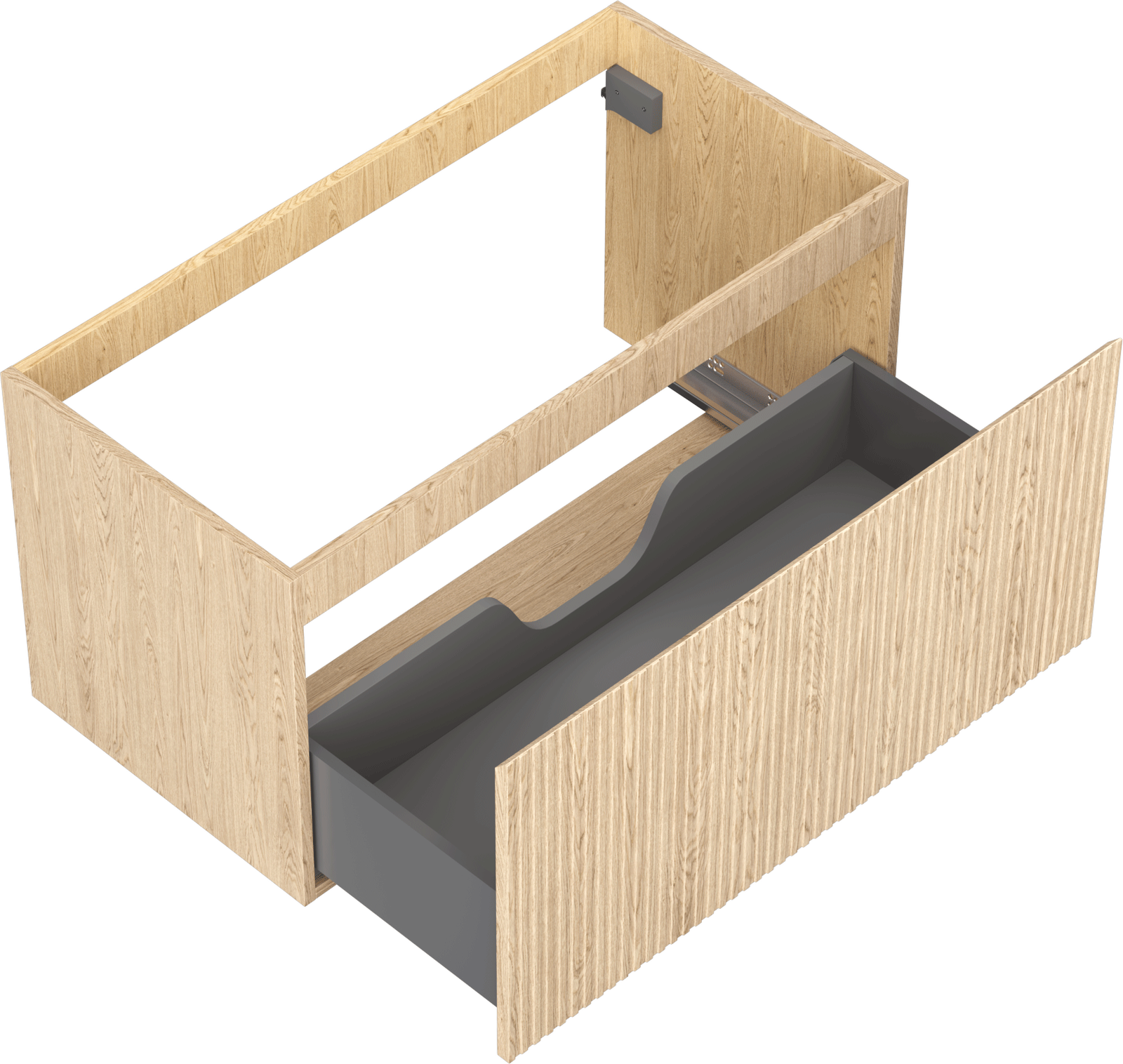 Decupajul în sertar este proiectat în așa fel încât să acomodeze sifonul, care este esențial în instalațiile de lavoare. Datorită acestui fapt, mobila poate fi montată complet funcțională, fără a fi necesară renunțarea la spațiul din sertar în favoarea instalației.