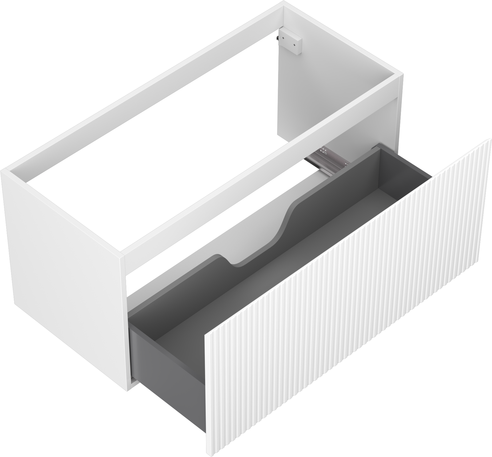 Decupajul în sertar este proiectat în așa fel încât să acomodeze sifonul, care este esențial în instalațiile de lavoare. Datorită acestui fapt, mobila poate fi montată complet funcțională, fără a fi necesară renunțarea la spațiul din sertar în favoarea instalației.