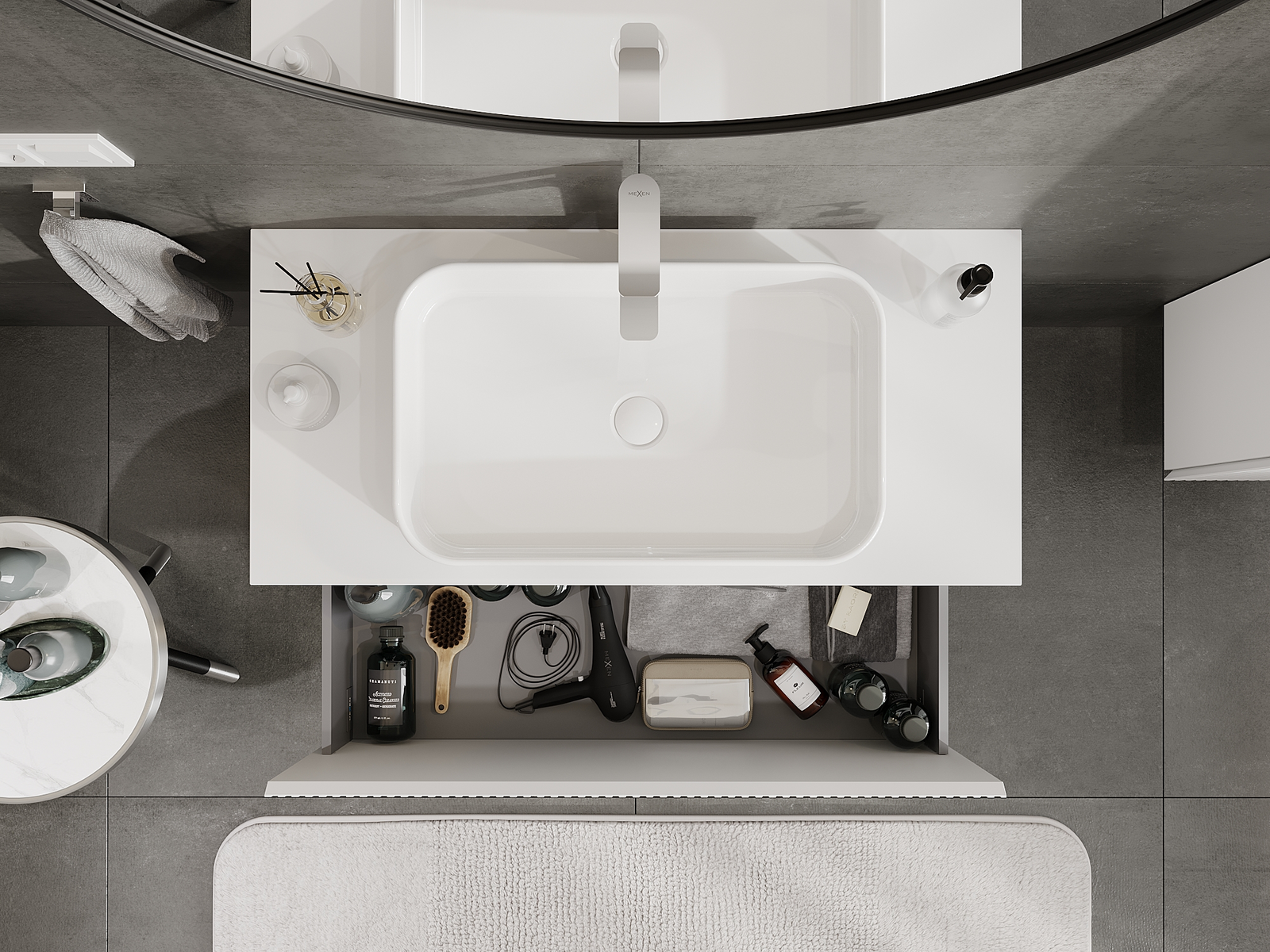 Mobilierul nostru modular pentru baie poate fi combinat în diverse configurații de culori, permițând personalizarea completă. Puteți alege atât aspectul, cât și funcțiile fiecărui element, ceea ce permite adaptarea mobilierului la preferințele dvs. stilistice și funcționale.