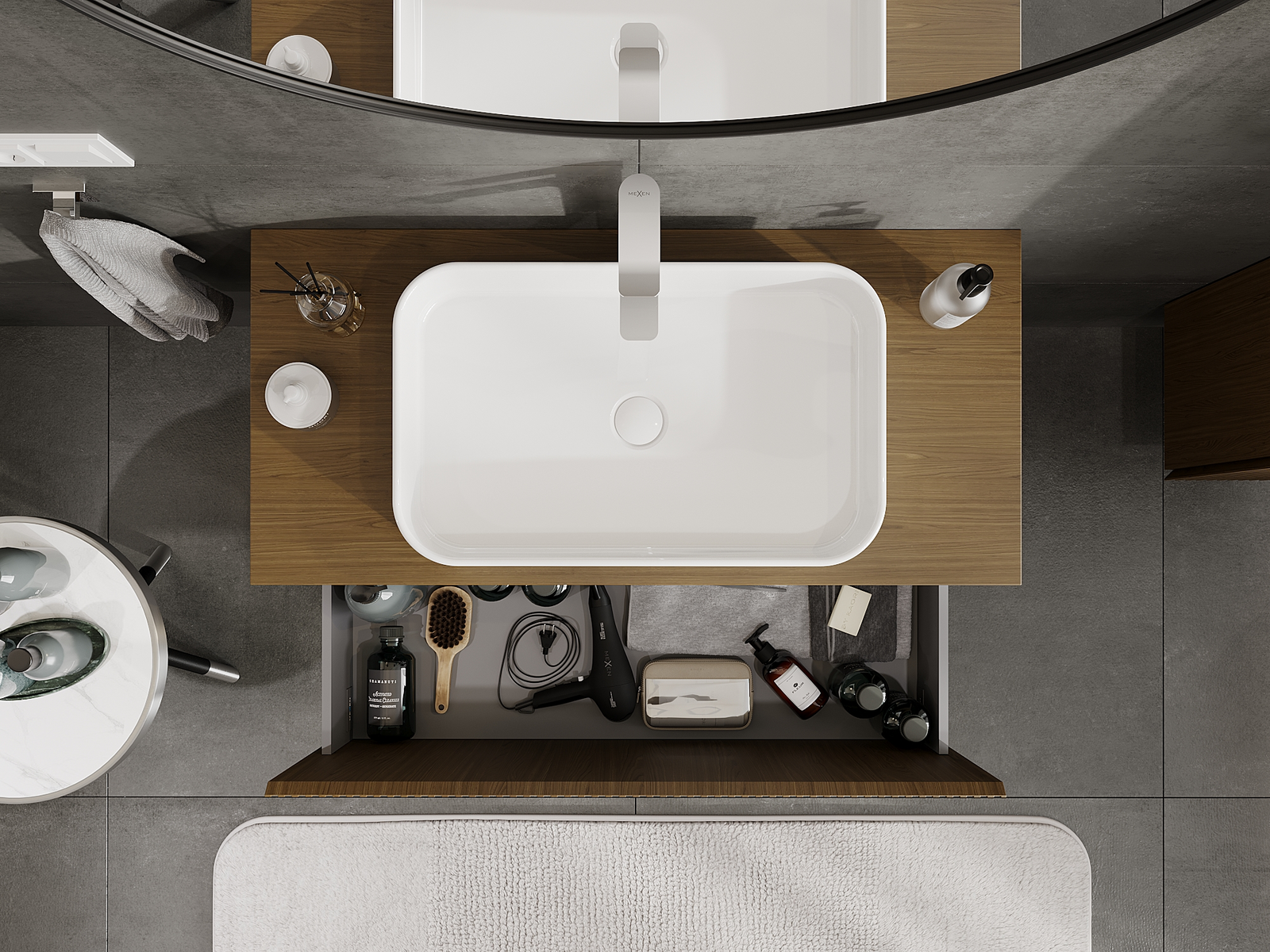 Mobilierul nostru modular pentru baie poate fi combinat în diverse configurații de culori, permițând personalizarea completă. Puteți alege atât aspectul, cât și funcțiile fiecărui element, ceea ce permite adaptarea mobilierului la preferințele dvs. stilistice și funcționale.