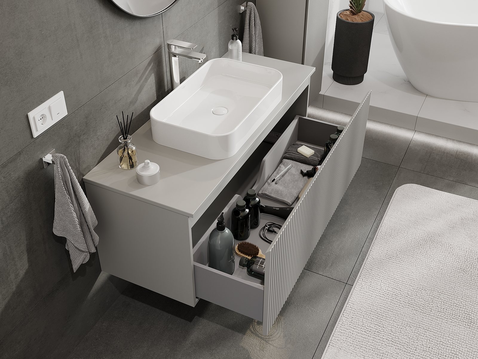 Mobilierul nostru modular pentru baie poate fi combinat în diverse configurații de culori, permițând personalizarea completă. Puteți alege atât aspectul, cât și funcțiile fiecărui element, ceea ce permite adaptarea mobilierului la preferințele dvs. stilistice și funcționale.