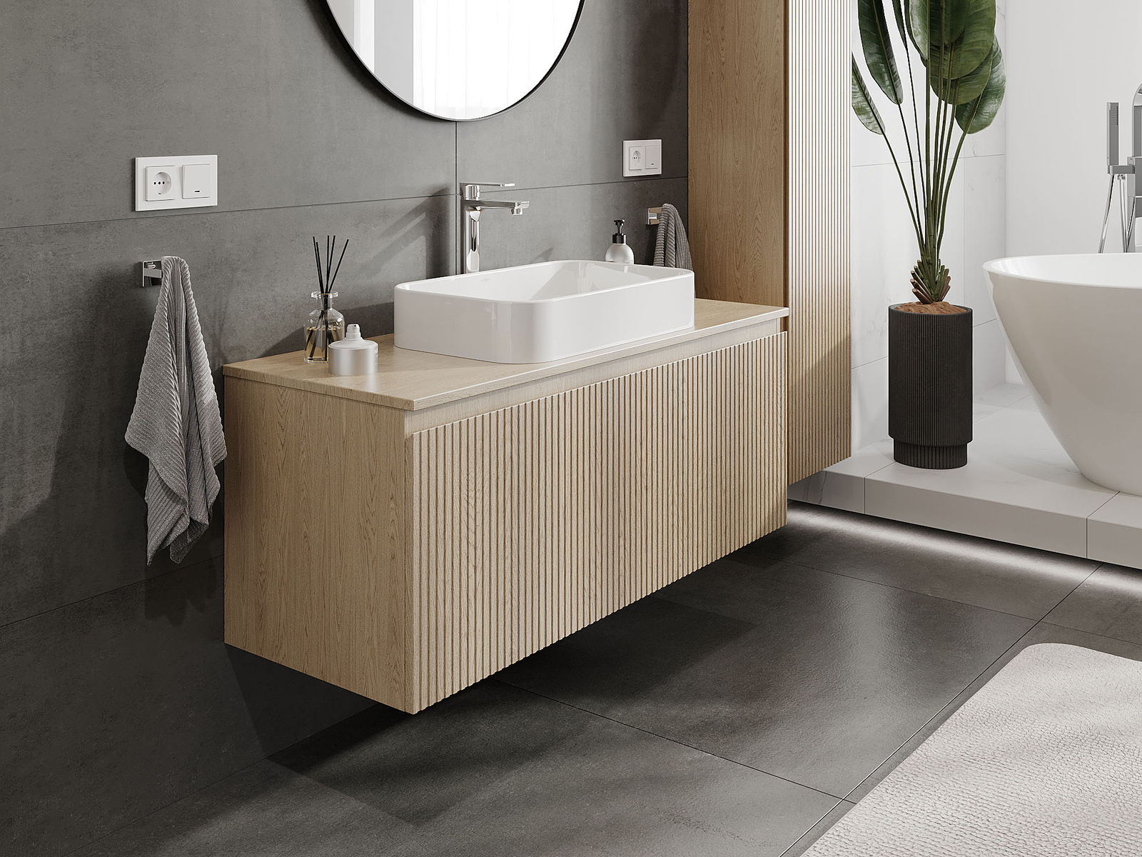 Mobilierul nostru modular pentru baie poate fi combinat în diverse configurații de culori, permițând personalizarea completă. Puteți alege atât aspectul, cât și funcțiile fiecărui element, ceea ce permite adaptarea mobilierului la preferințele dvs. stilistice și funcționale.