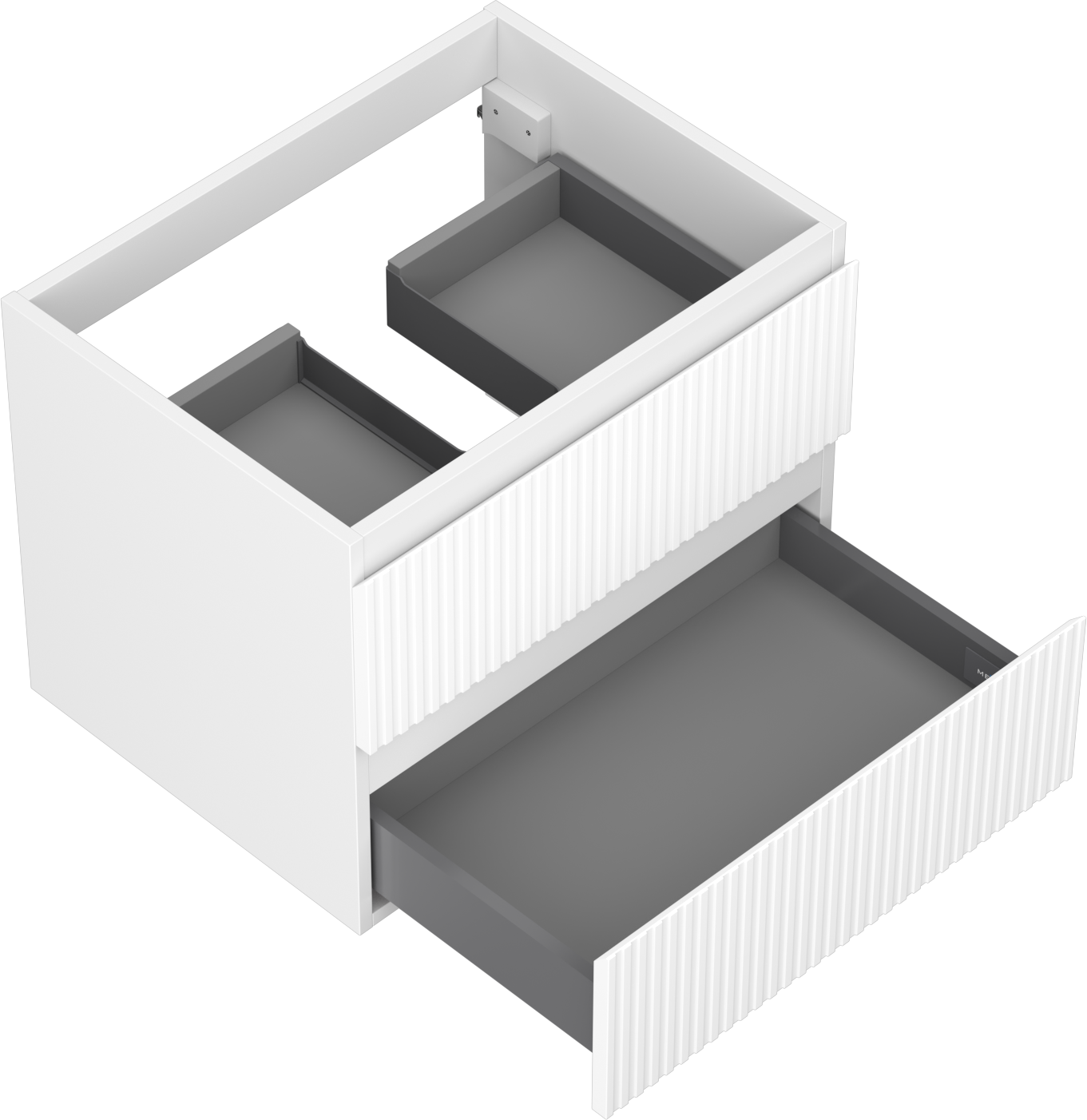 Decupajul în sertar este proiectat în așa fel încât să acomodeze sifonul, care este esențial în instalațiile de lavoare. Datorită acestui fapt, mobila poate fi montată complet funcțională, fără a fi necesară renunțarea la spațiul din sertar în favoarea instalației.
