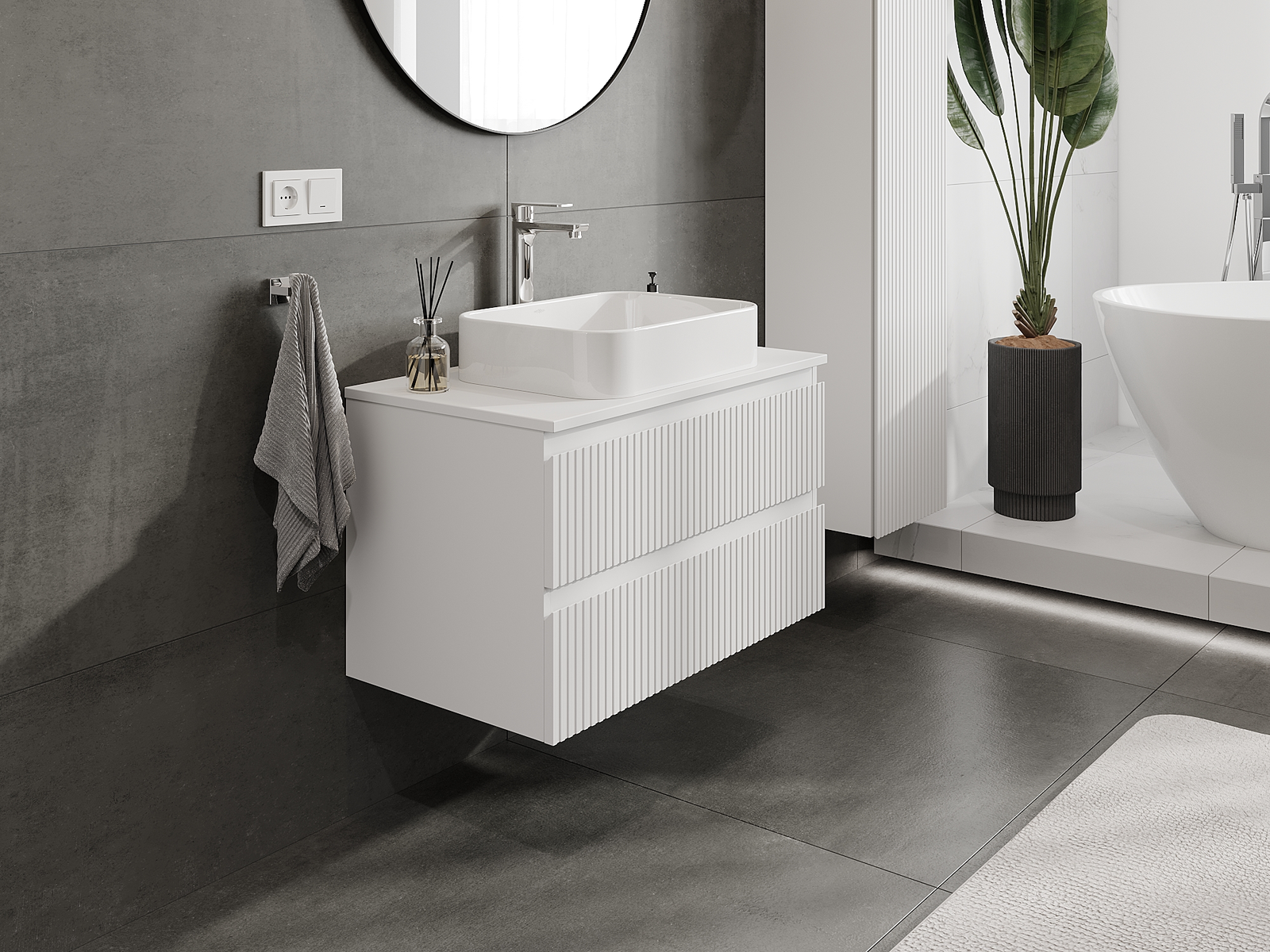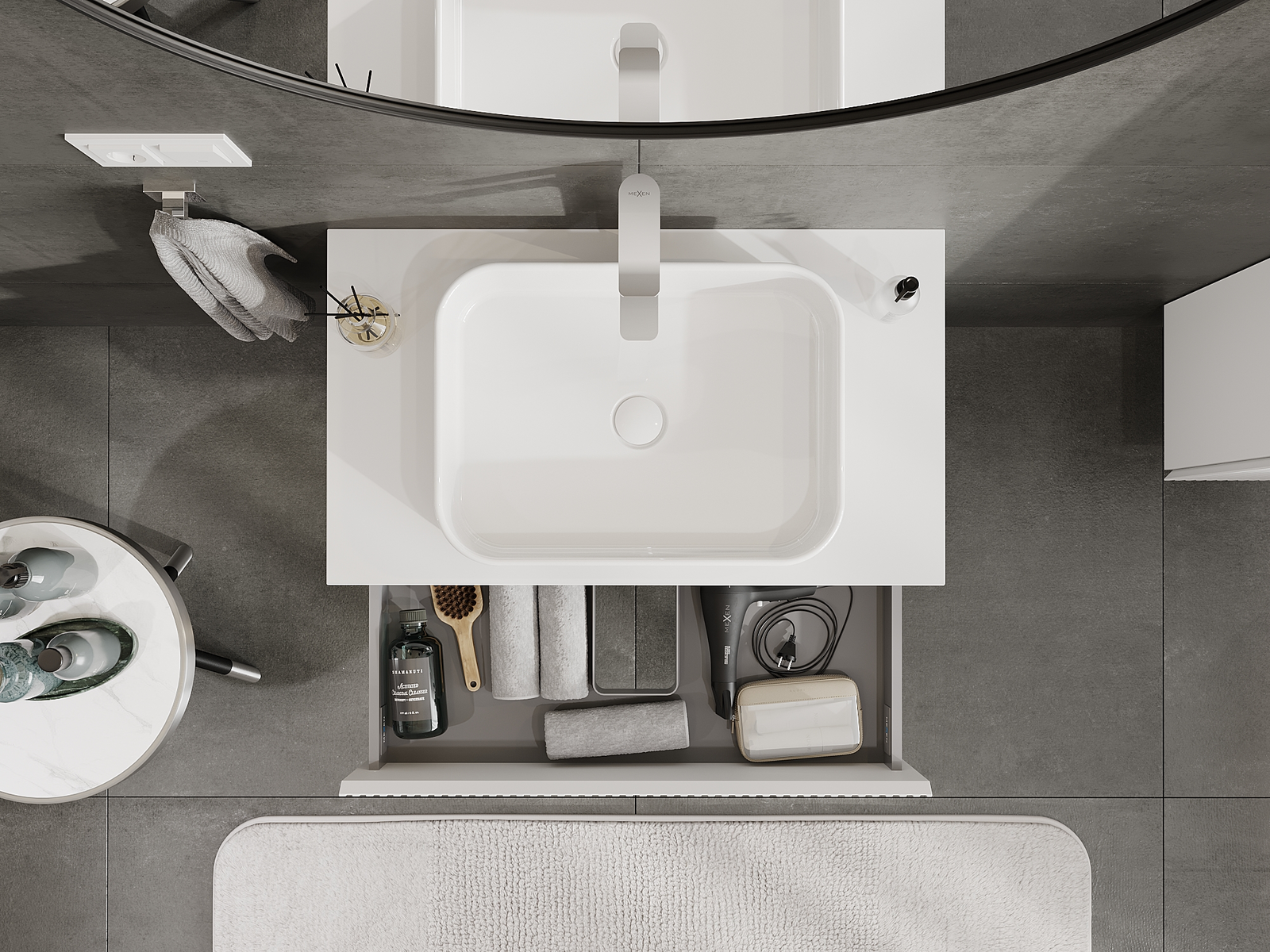 Mobilierul nostru modular pentru baie poate fi combinat în diverse configurații de culori, permițând personalizarea completă. Puteți alege atât aspectul, cât și funcțiile fiecărui element, ceea ce permite adaptarea mobilierului la preferințele dvs. stilistice și funcționale.
