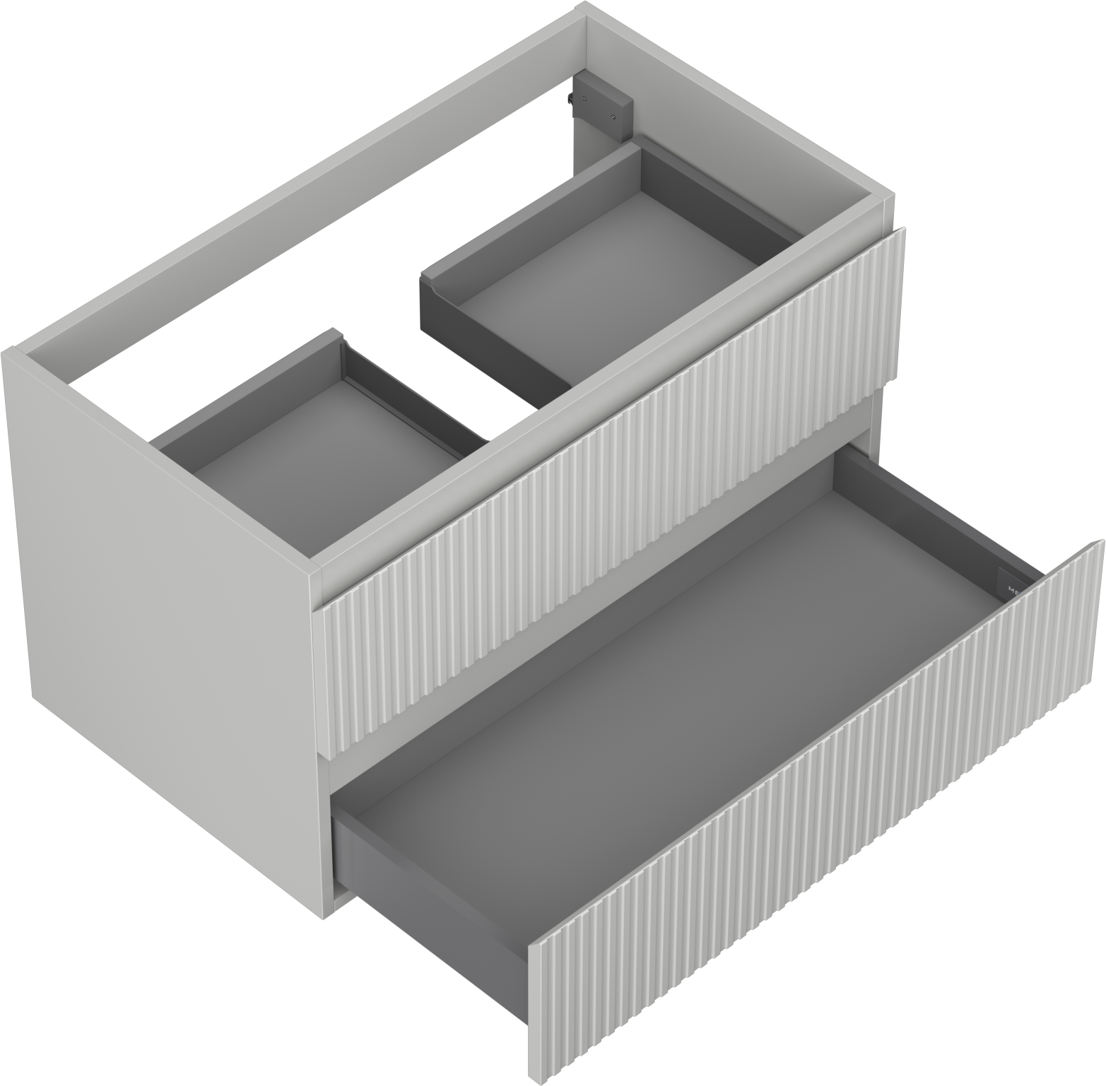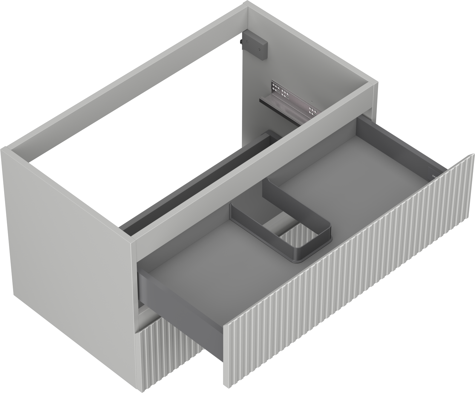 Decupajul în sertar este proiectat în așa fel încât să acomodeze sifonul, care este esențial în instalațiile de lavoare. Datorită acestui fapt, mobila poate fi montată complet funcțională, fără a fi necesară renunțarea la spațiul din sertar în favoarea instalației.