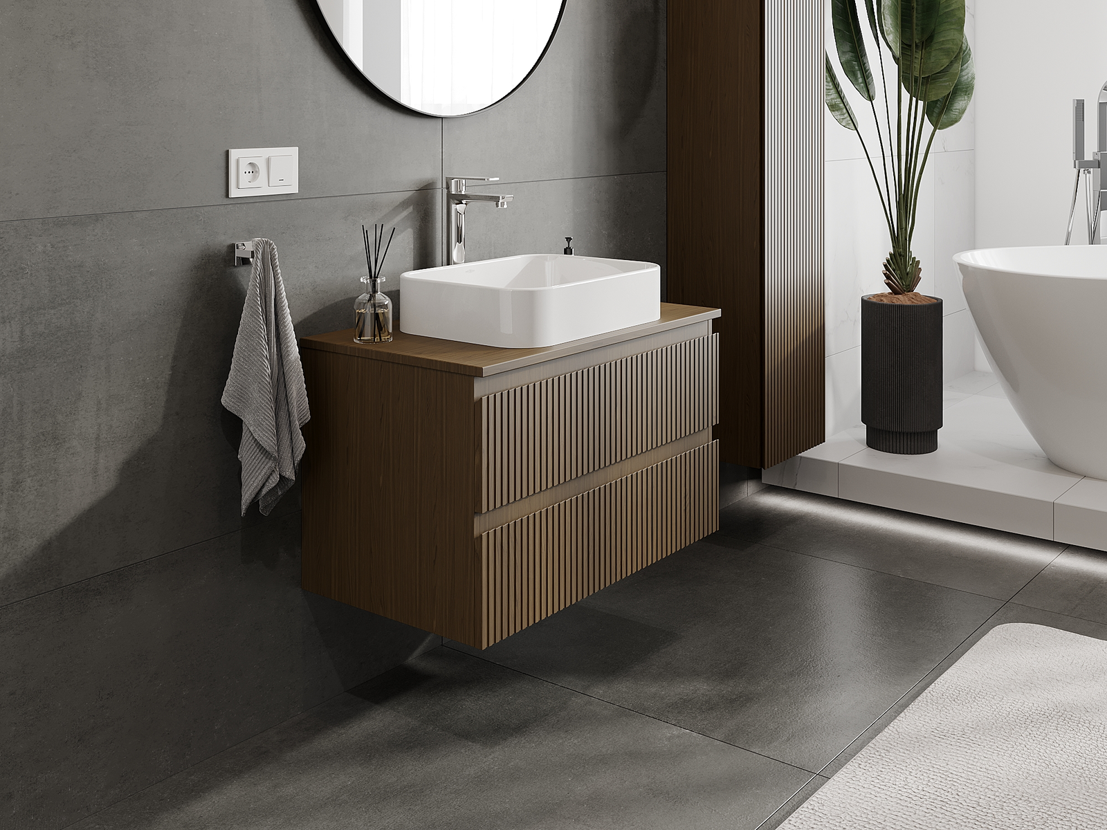 Mobilierul nostru modular pentru baie poate fi combinat în diverse configurații de culori, permițând personalizarea completă. Puteți alege atât aspectul, cât și funcțiile fiecărui element, ceea ce permite adaptarea mobilierului la preferințele dvs. stilistice și funcționale.