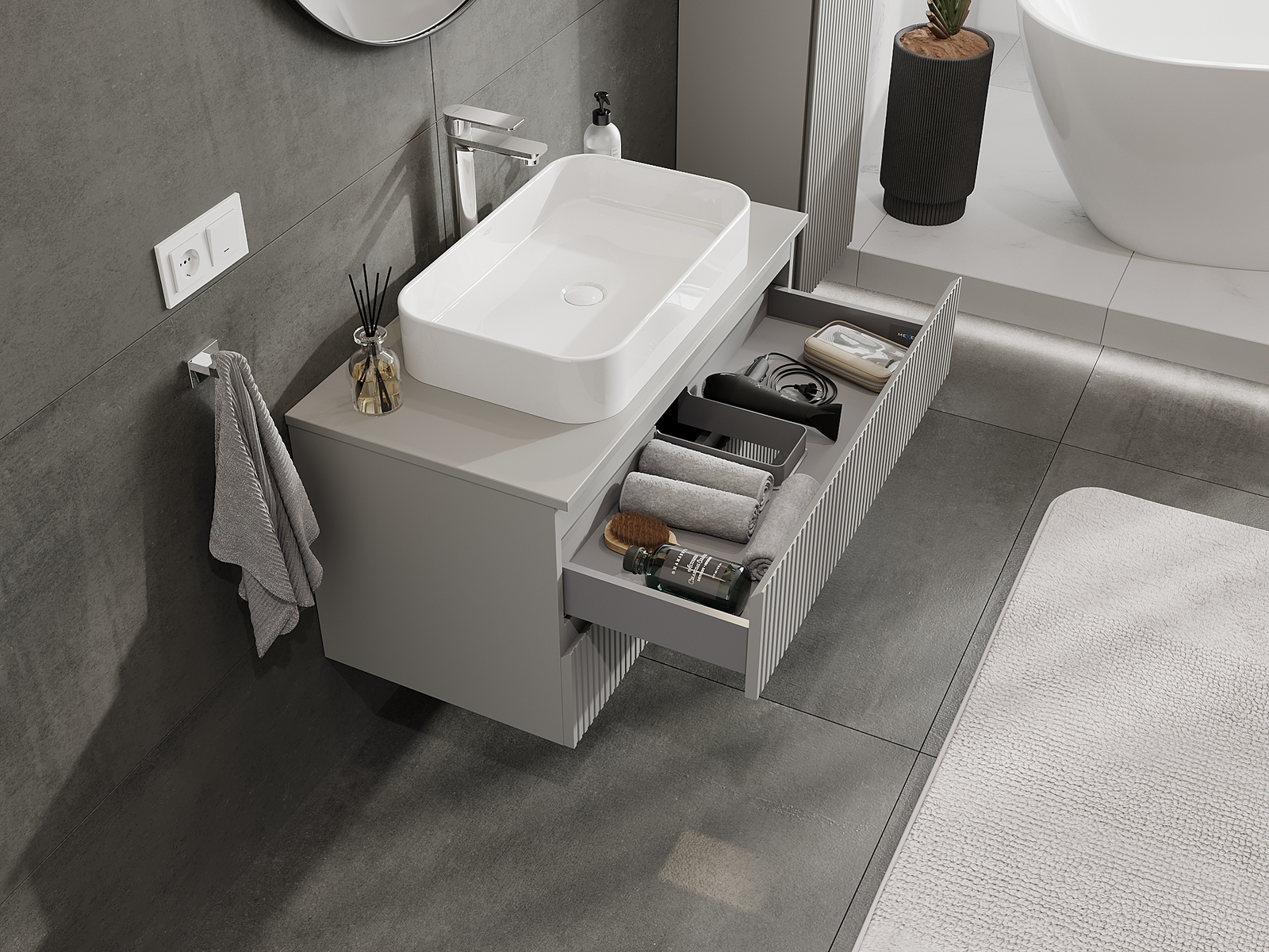 Mobilierul nostru modular pentru baie poate fi combinat în diverse configurații de culori, permițând personalizarea completă. Puteți alege atât aspectul, cât și funcțiile fiecărui element, ceea ce permite adaptarea mobilierului la preferințele dvs. stilistice și funcționale.