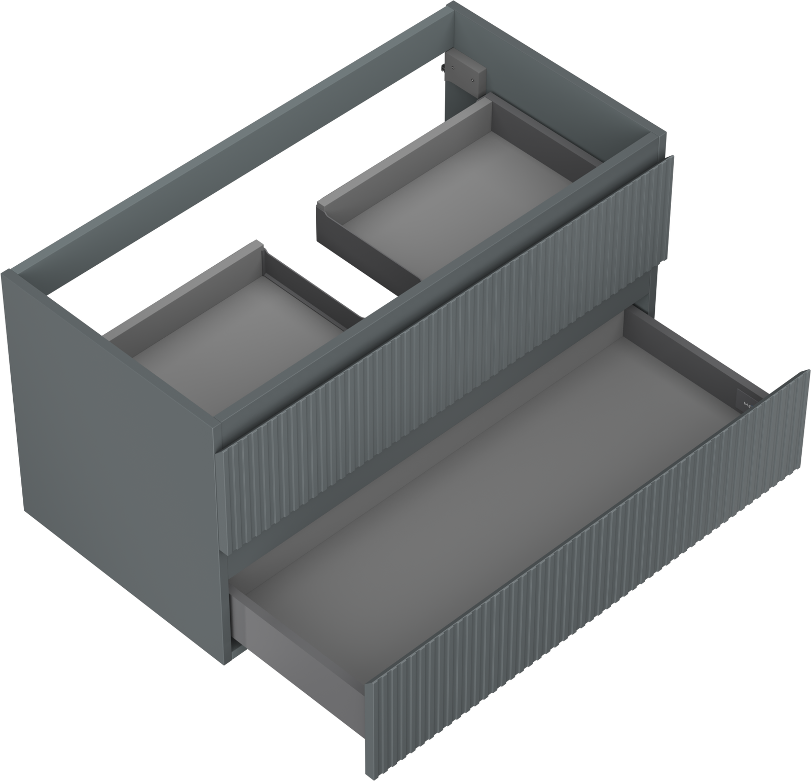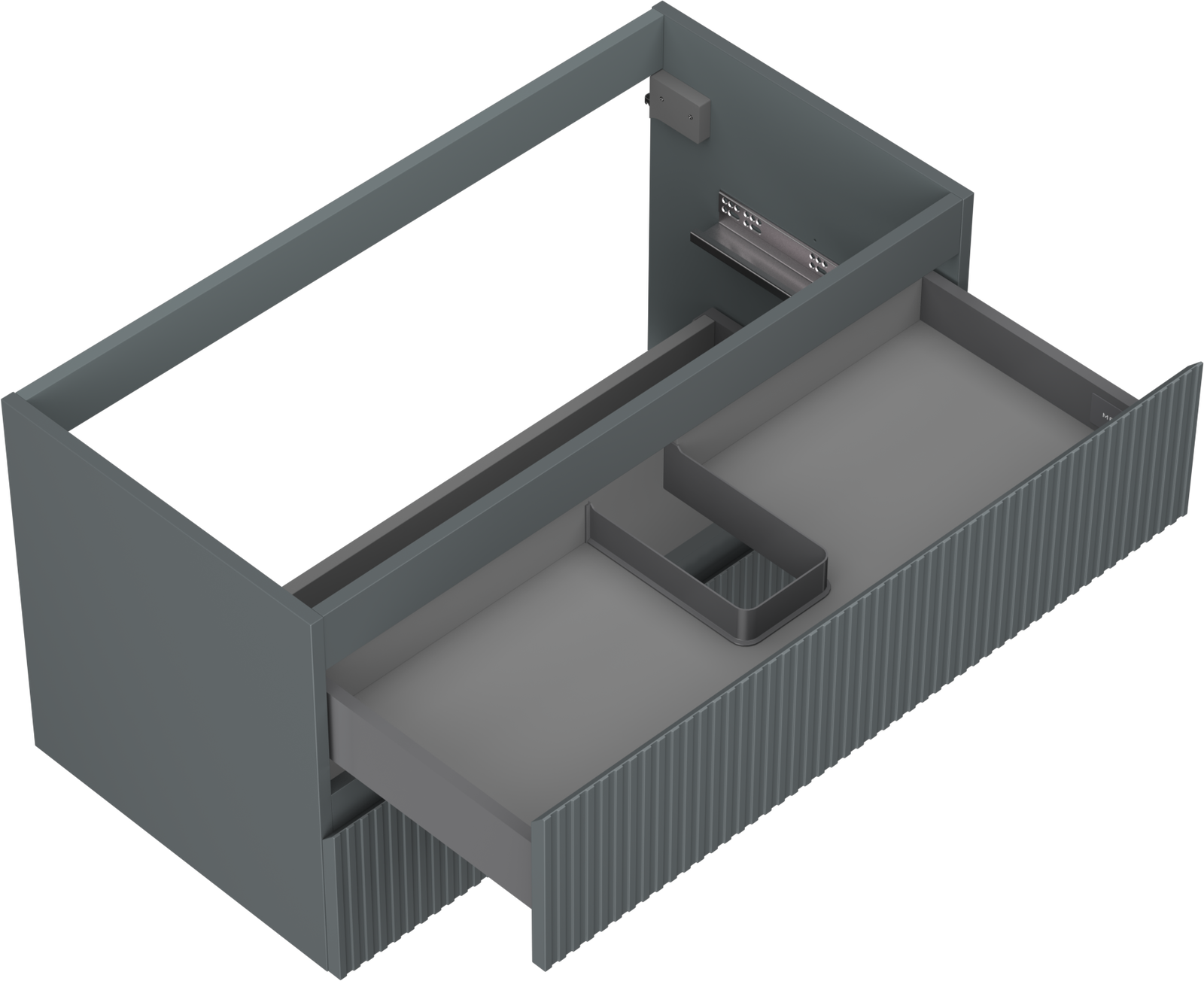 Decupajul în sertar este proiectat în așa fel încât să acomodeze sifonul, care este esențial în instalațiile de lavoare. Datorită acestui fapt, mobila poate fi montată complet funcțională, fără a fi necesară renunțarea la spațiul din sertar în favoarea instalației.