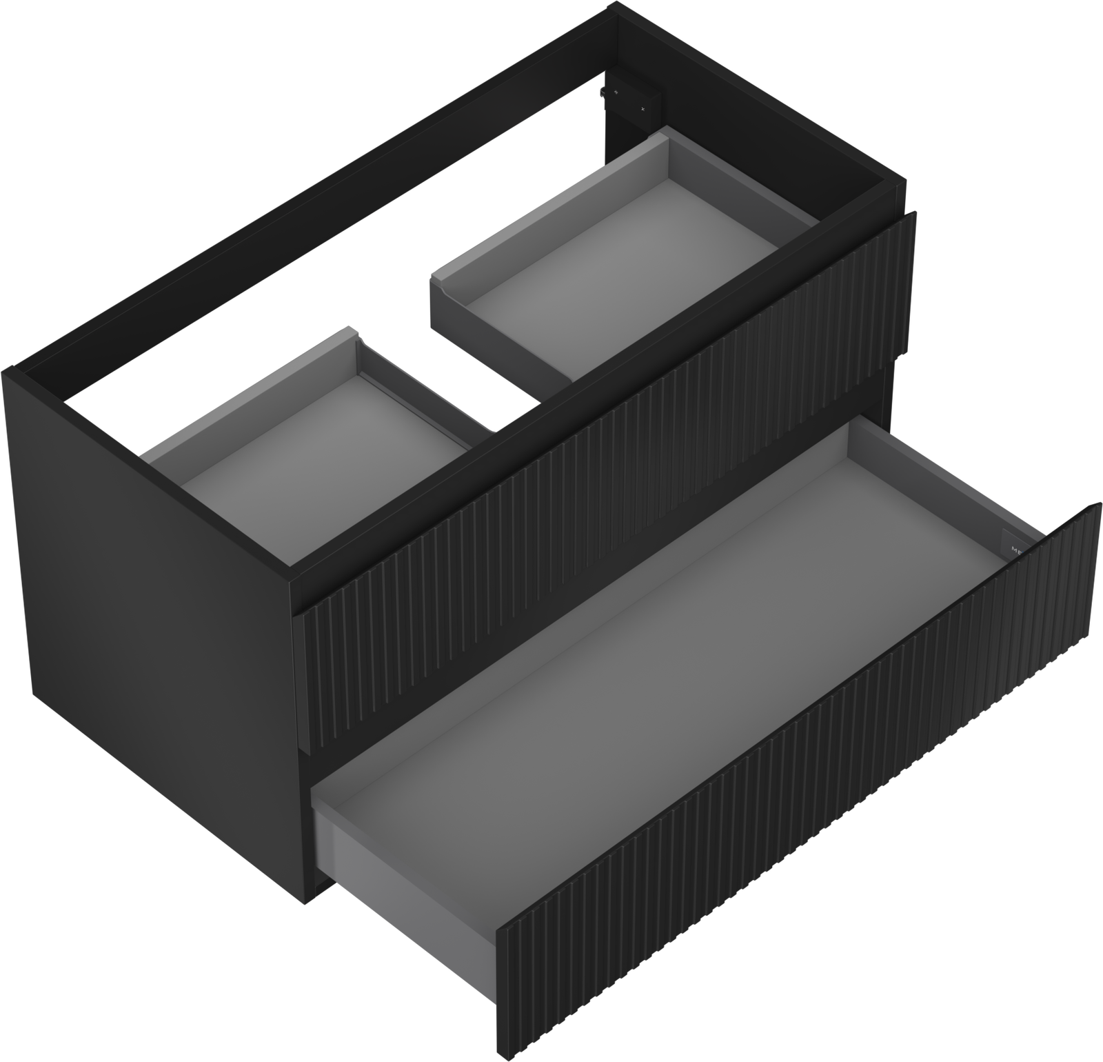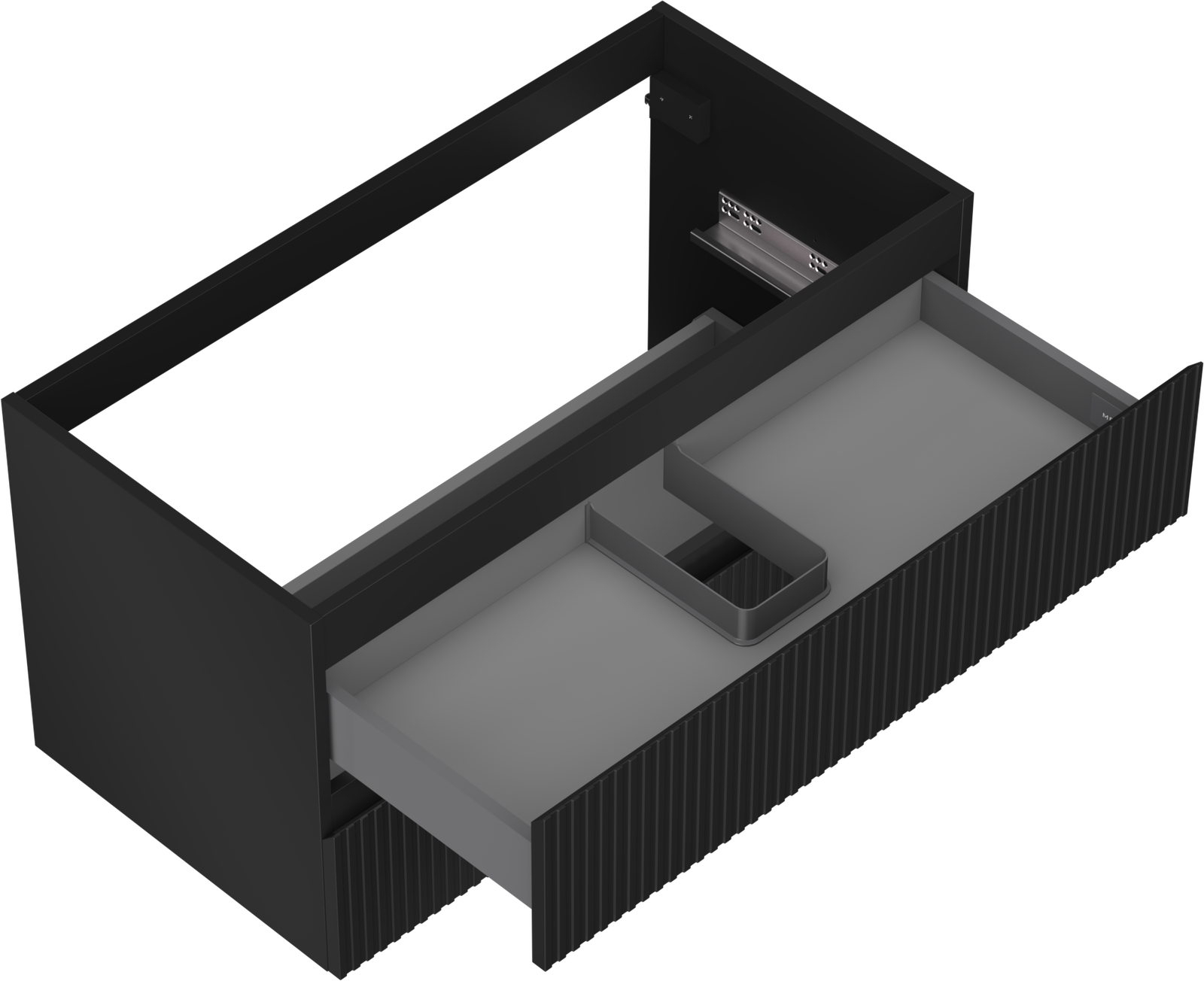 Decupajul în sertar este proiectat în așa fel încât să acomodeze sifonul, care este esențial în instalațiile de lavoare. Datorită acestui fapt, mobila poate fi montată complet funcțională, fără a fi necesară renunțarea la spațiul din sertar în favoarea instalației.