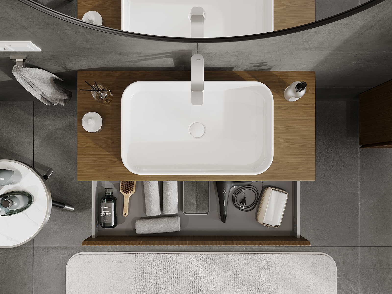Mobilierul nostru modular pentru baie poate fi combinat în diverse configurații de culori, permițând personalizarea completă. Puteți alege atât aspectul, cât și funcțiile fiecărui element, ceea ce permite adaptarea mobilierului la preferințele dvs. stilistice și funcționale.