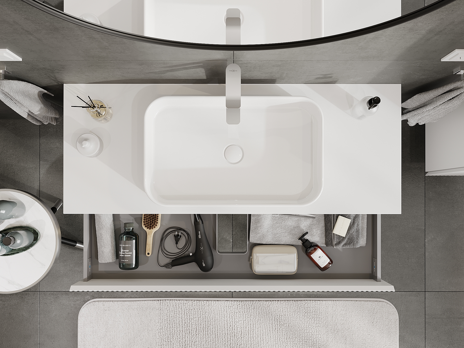 Mobilierul nostru modular pentru baie poate fi combinat în diverse configurații de culori, permițând personalizarea completă. Puteți alege atât aspectul, cât și funcțiile fiecărui element, ceea ce permite adaptarea mobilierului la preferințele dvs. stilistice și funcționale.