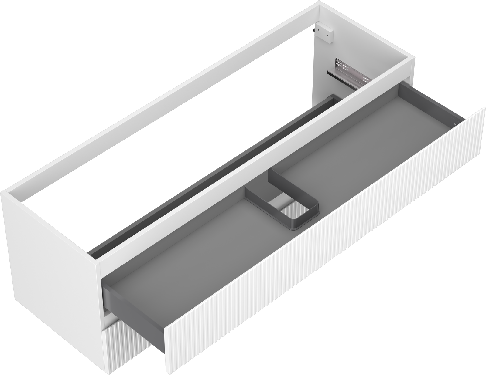 Decupajul în sertar este proiectat în așa fel încât să acomodeze sifonul, care este esențial în instalațiile de lavoare. Datorită acestui fapt, mobila poate fi montată complet funcțională, fără a fi necesară renunțarea la spațiul din sertar în favoarea instalației.