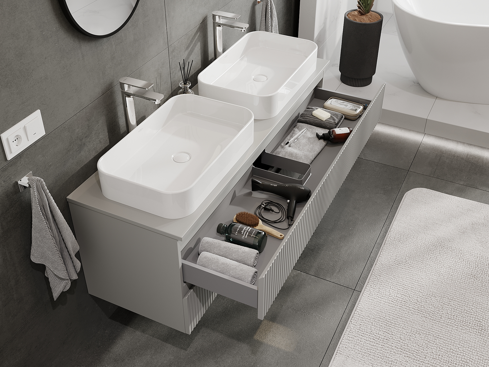 Mobilierul nostru modular pentru baie poate fi combinat în diverse configurații de culori, permițând personalizarea completă. Puteți alege atât aspectul, cât și funcțiile fiecărui element, ceea ce permite adaptarea mobilierului la preferințele dvs. stilistice și funcționale.