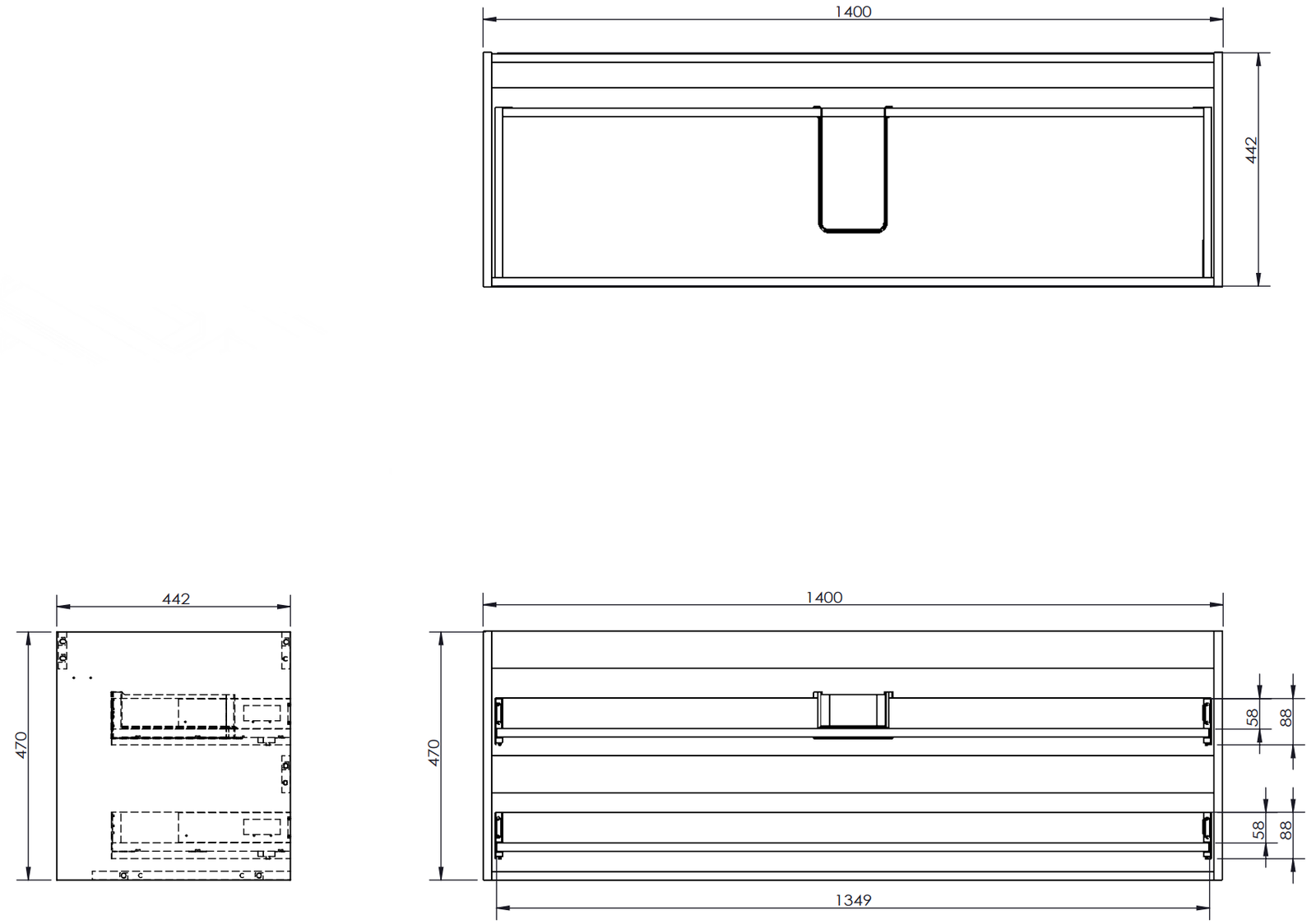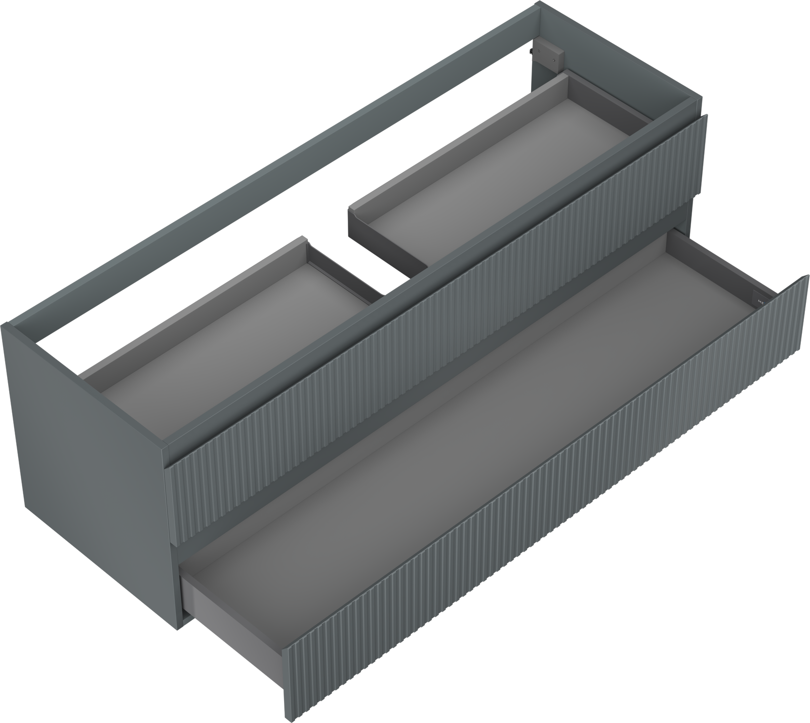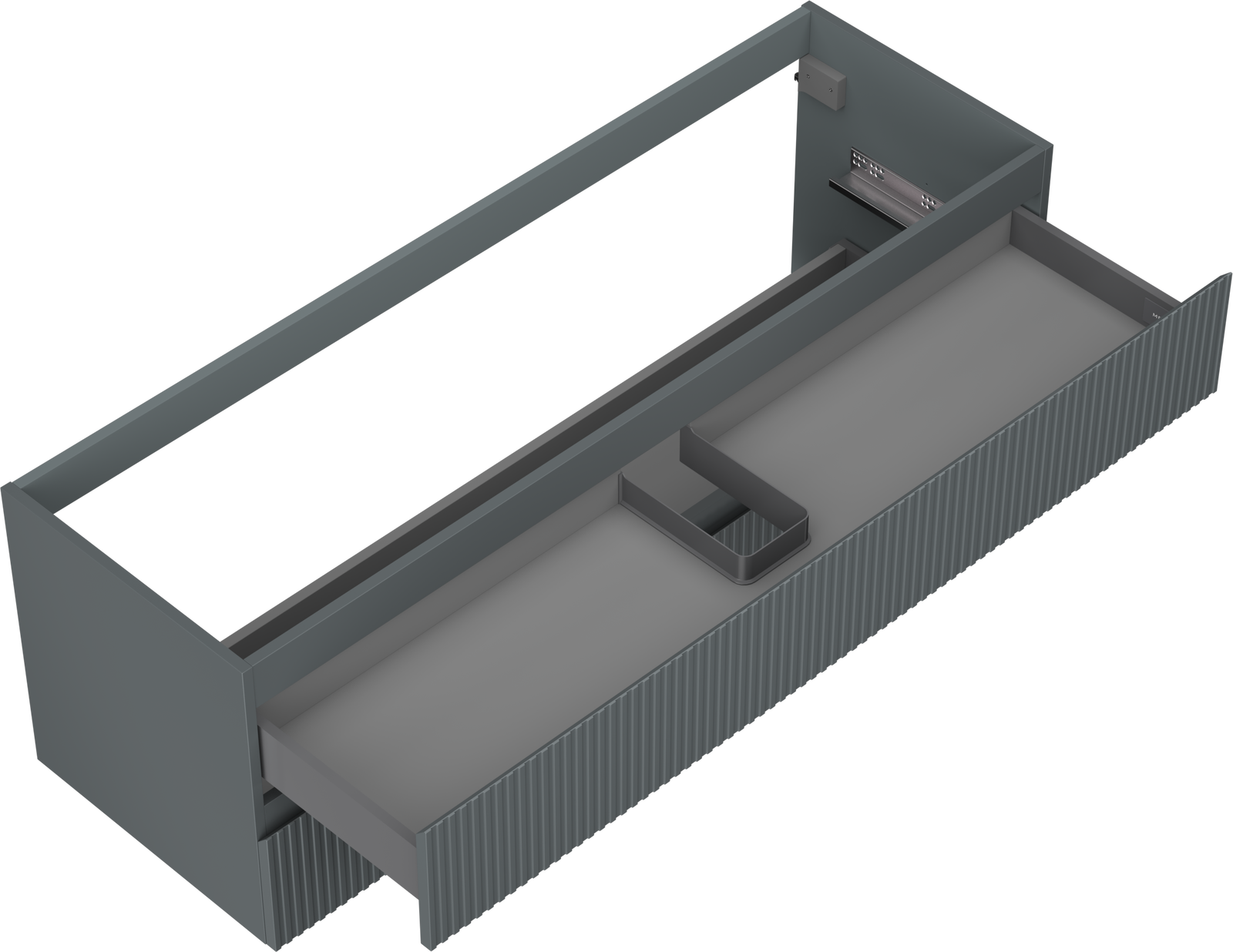 Decupajul în sertar este proiectat în așa fel încât să acomodeze sifonul, care este esențial în instalațiile de lavoare. Datorită acestui fapt, mobila poate fi montată complet funcțională, fără a fi necesară renunțarea la spațiul din sertar în favoarea instalației.
