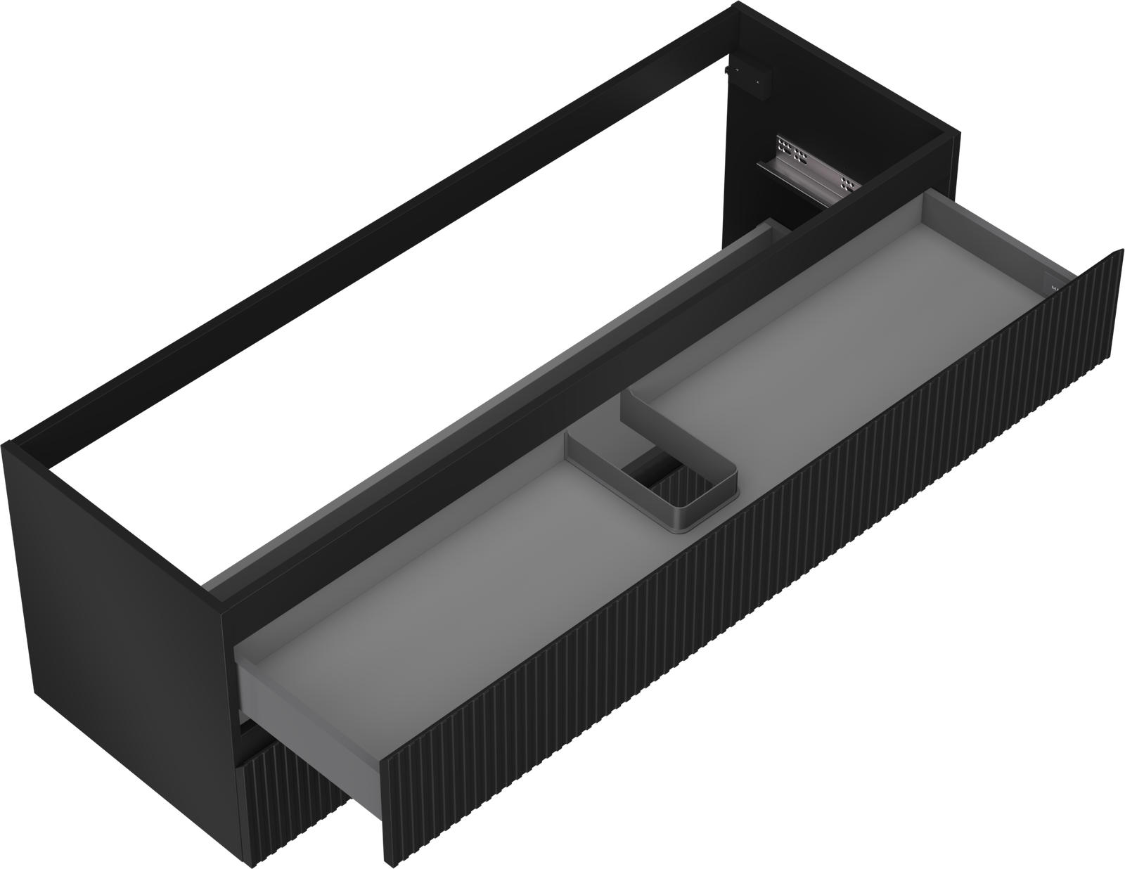 Decupajul în sertar este proiectat în așa fel încât să acomodeze sifonul, care este esențial în instalațiile de lavoare. Datorită acestui fapt, mobila poate fi montată complet funcțională, fără a fi necesară renunțarea la spațiul din sertar în favoarea instalației.