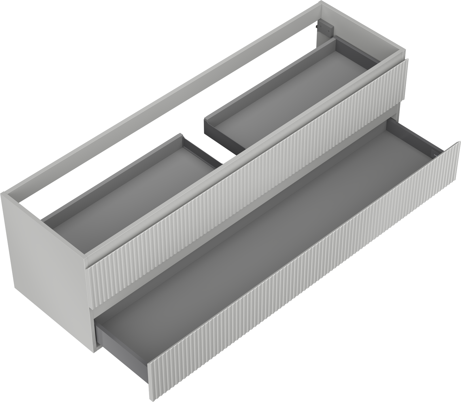 Decupajul în sertar este proiectat în așa fel încât să acomodeze sifonul, care este esențial în instalațiile de lavoare. Datorită acestui fapt, mobila poate fi montată complet funcțională, fără a fi necesară renunțarea la spațiul din sertar în favoarea instalației.