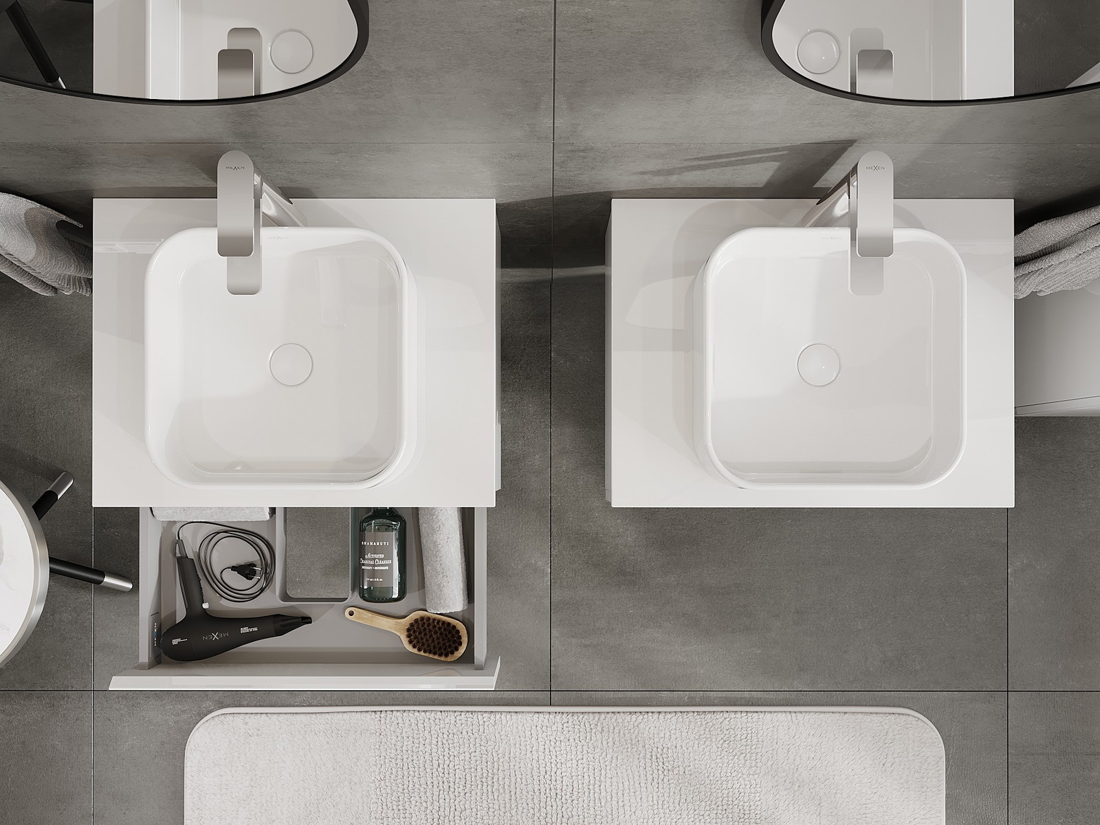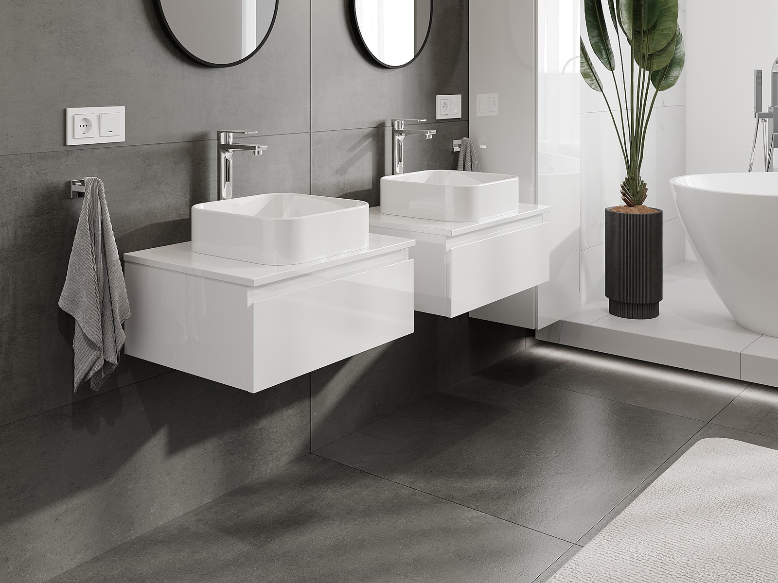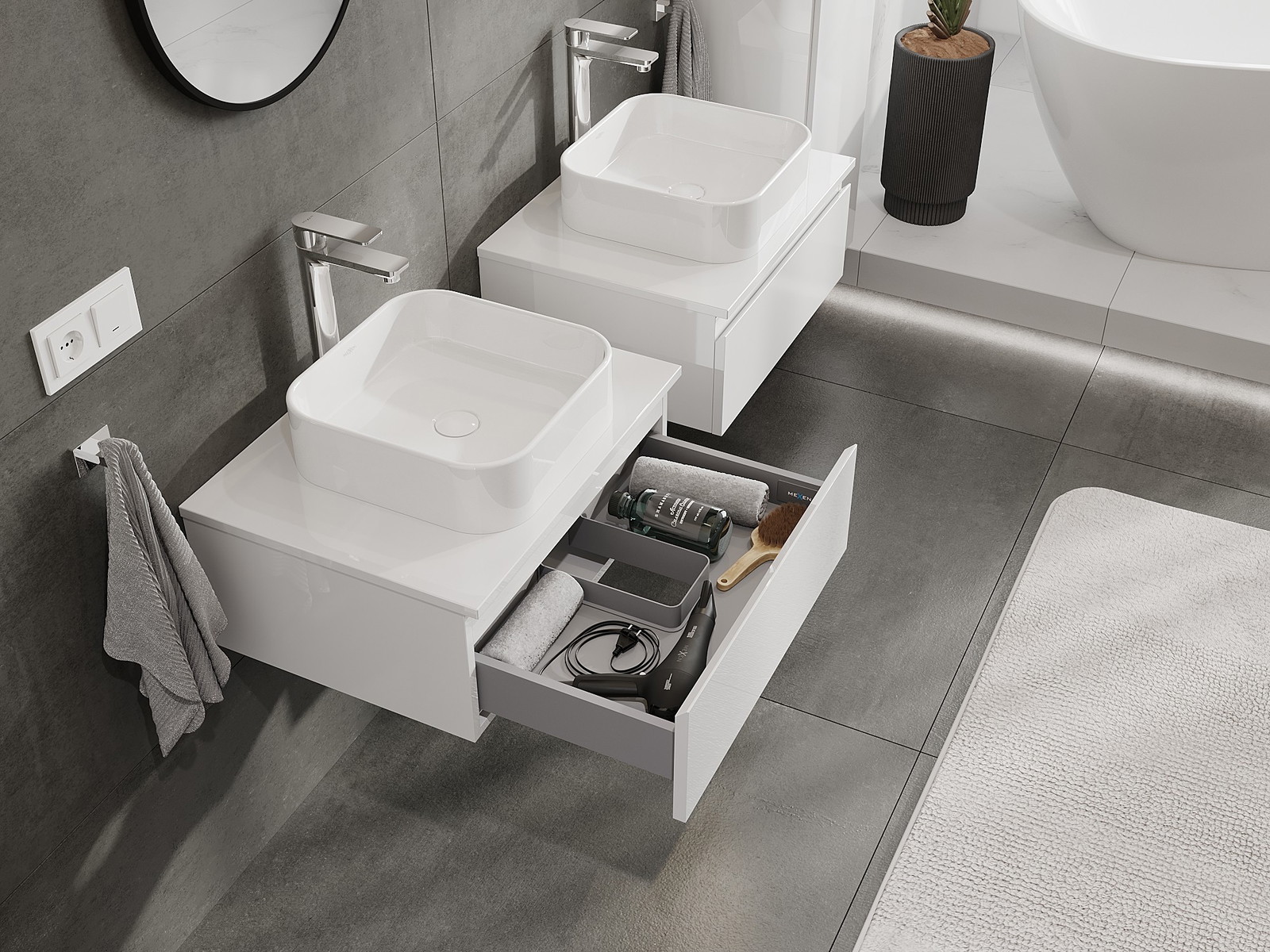 Mobilierul nostru modular pentru baie poate fi combinat în diverse configurații de culori, permițând personalizarea completă. Puteți alege atât aspectul, cât și funcțiile fiecărui element, ceea ce permite adaptarea mobilierului la preferințele dvs. stilistice și funcționale.