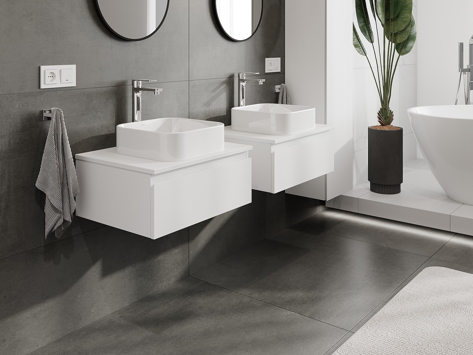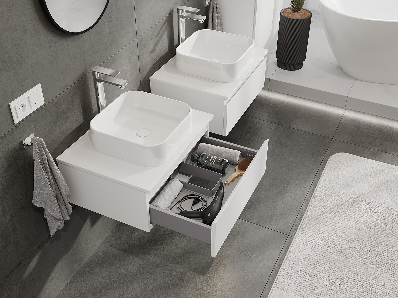 Mobilierul nostru modular pentru baie poate fi combinat în diverse configurații de culori, permițând personalizarea completă. Puteți alege atât aspectul, cât și funcțiile fiecărui element, ceea ce permite adaptarea mobilierului la preferințele dvs. stilistice și funcționale.