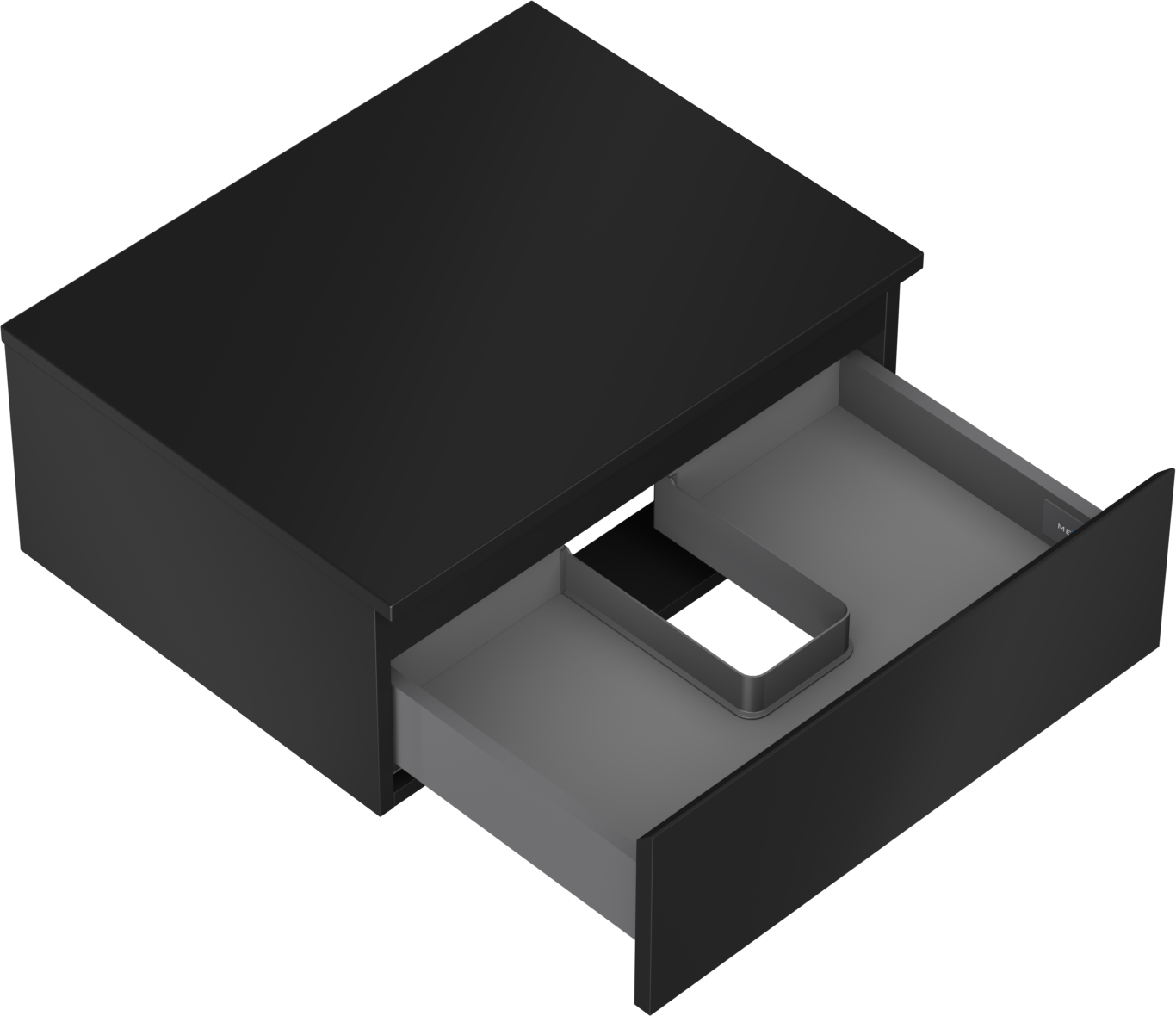 Decupajul în sertar este proiectat în așa fel încât să acomodeze sifonul, care este esențial în instalațiile de lavoare. Datorită acestui fapt, mobila poate fi montată complet funcțională, fără a fi necesară renunțarea la spațiul din sertar în favoarea instalației.
