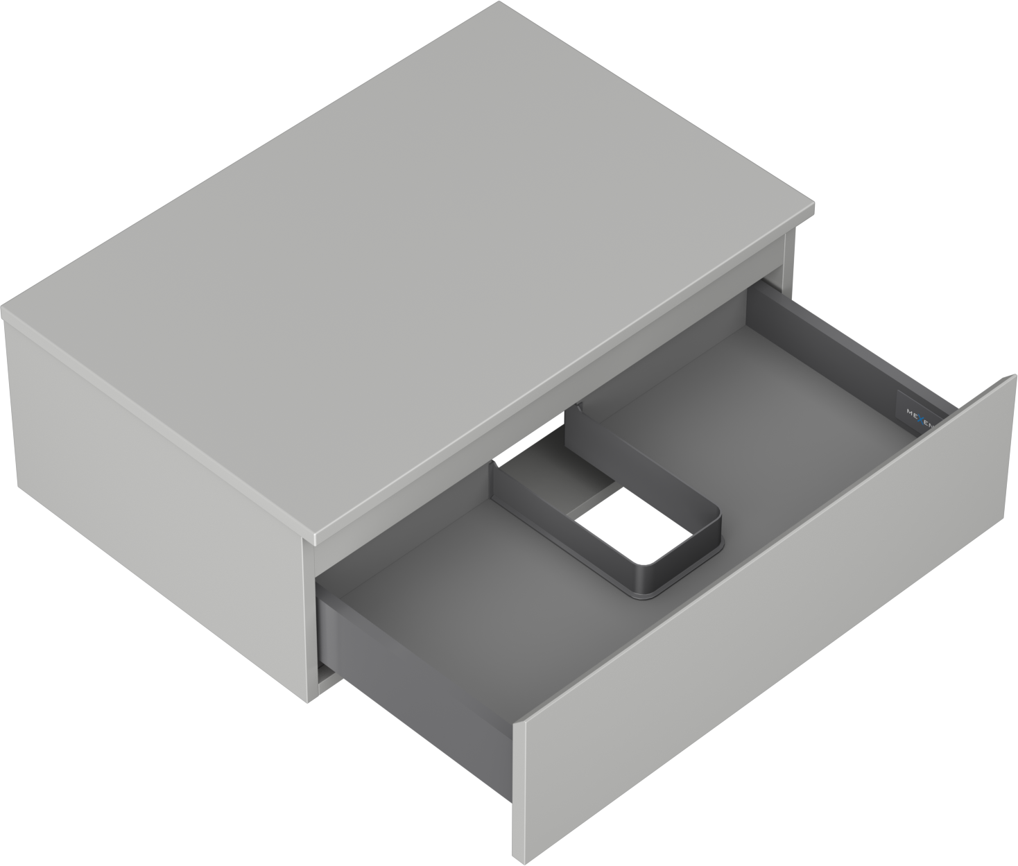 Decupajul în sertar este proiectat în așa fel încât să acomodeze sifonul, care este esențial în instalațiile de lavoare. Datorită acestui fapt, mobila poate fi montată complet funcțională, fără a fi necesară renunțarea la spațiul din sertar în favoarea instalației.