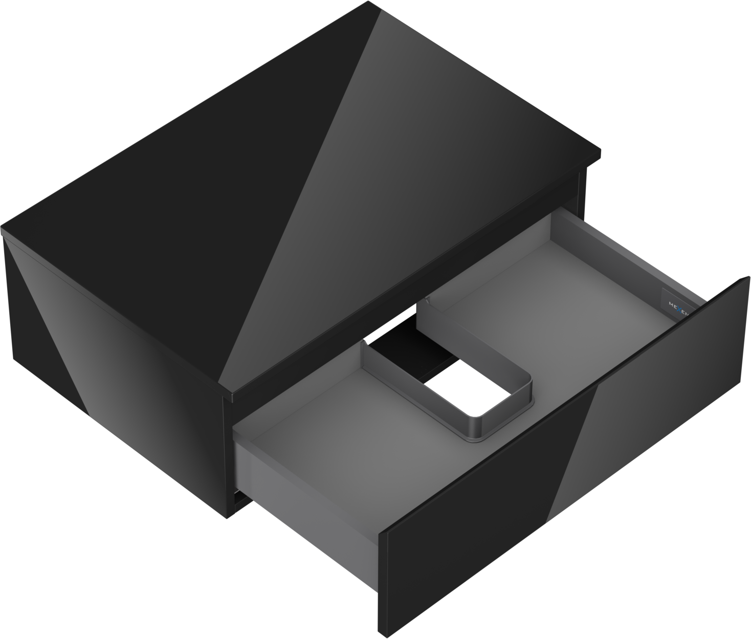 Decupajul în sertar este proiectat în așa fel încât să acomodeze sifonul, care este esențial în instalațiile de lavoare. Datorită acestui fapt, mobila poate fi montată complet funcțională, fără a fi necesară renunțarea la spațiul din sertar în favoarea instalației.