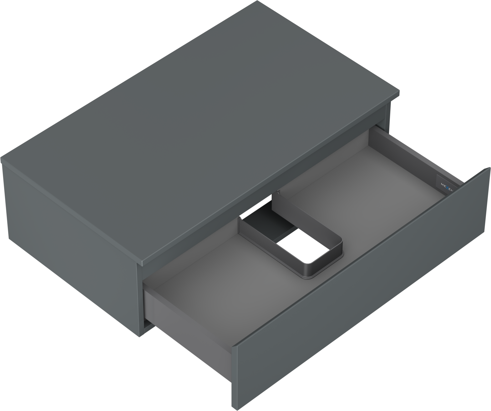 Decupajul în sertar este proiectat în așa fel încât să acomodeze sifonul, care este esențial în instalațiile de lavoare. Datorită acestui fapt, mobila poate fi montată complet funcțională, fără a fi necesară renunțarea la spațiul din sertar în favoarea instalației.