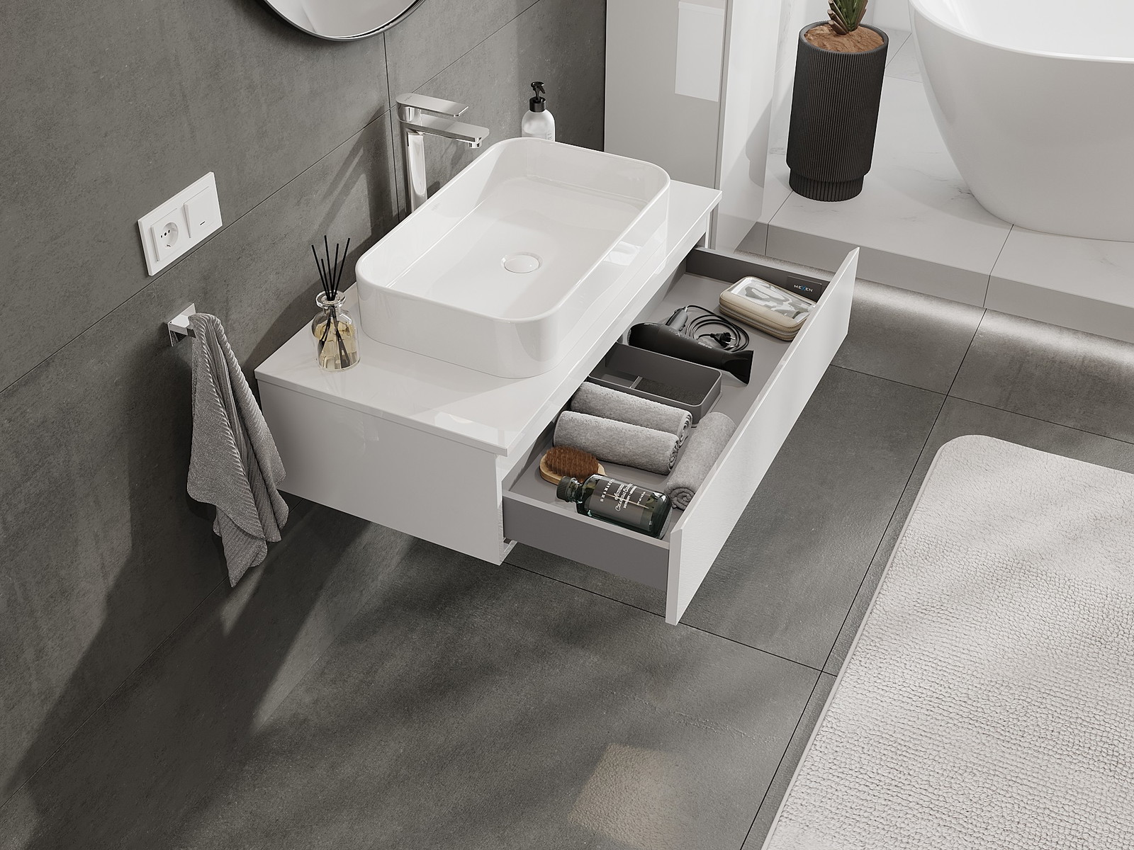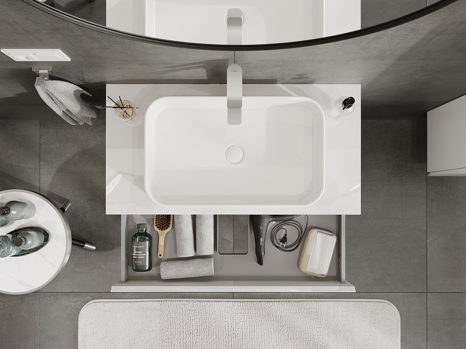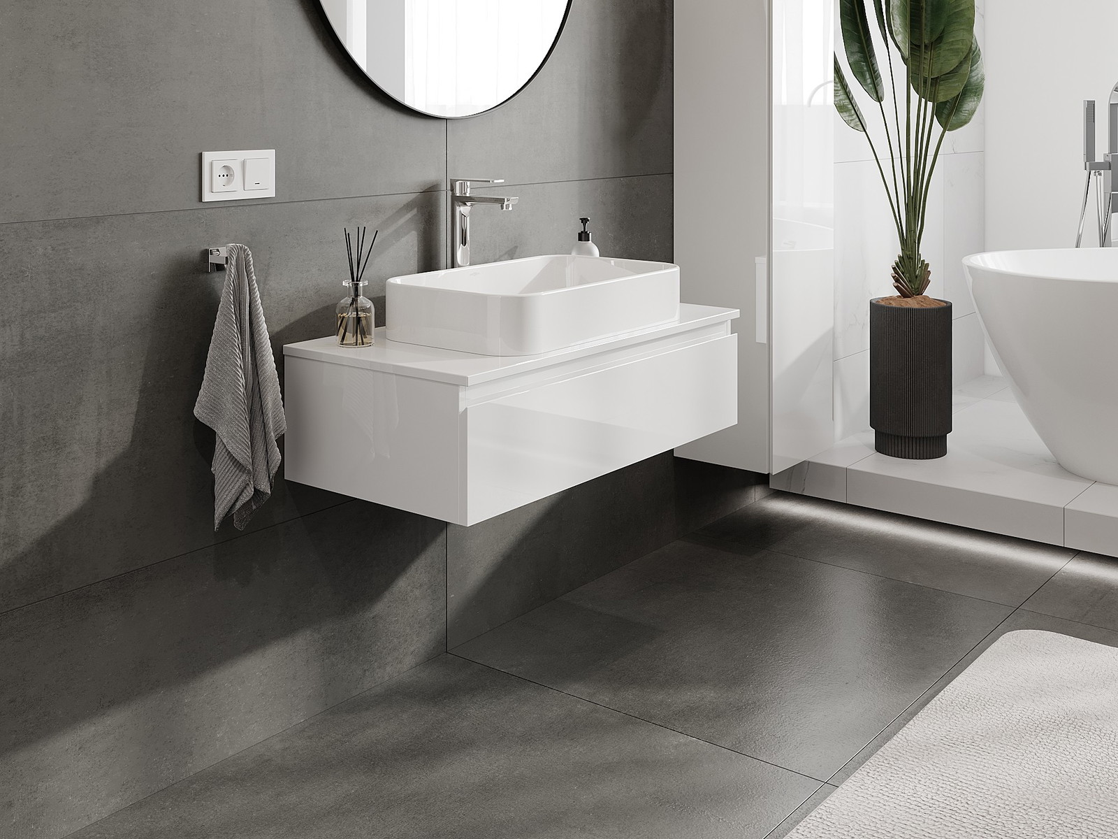 Mobilierul nostru modular pentru baie poate fi combinat în diverse configurații de culori, permițând personalizarea completă. Puteți alege atât aspectul, cât și funcțiile fiecărui element, ceea ce permite adaptarea mobilierului la preferințele dvs. stilistice și funcționale.