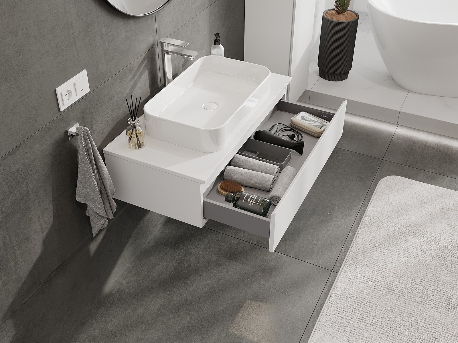 Mobilierul nostru modular pentru baie poate fi combinat în diverse configurații de culori, permițând personalizarea completă. Puteți alege atât aspectul, cât și funcțiile fiecărui element, ceea ce permite adaptarea mobilierului la preferințele dvs. stilistice și funcționale.